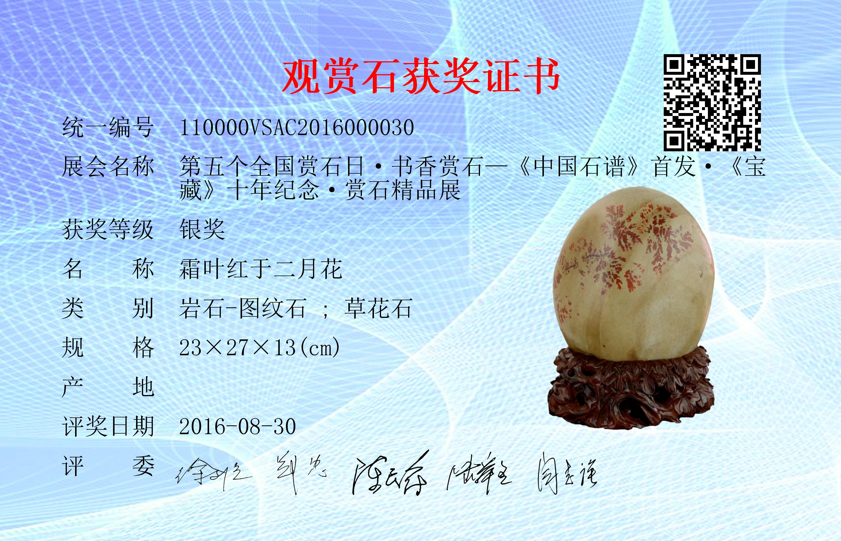 本届参展观赏石来源于《中国石谱》入谱精品石、中石协各专委会精选藏石、社会征集。本藏石通过社会征集参展。社会征集参展藏石评选规则:由网络评选(权重占比20%)、大众现场评选(权重占比35%)、专家现场评选(权重占比45%)三部分组成。