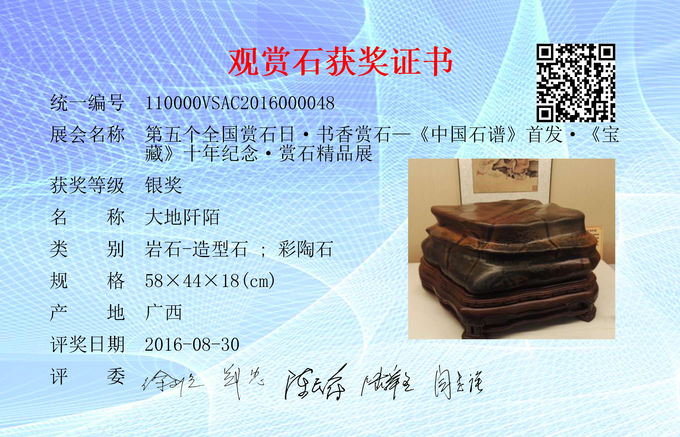 本届参展观赏石来源于《中国石谱》入谱精品石、中石协各专委会精选藏石、社会征集。本藏石通过社会征集参展。社会征集参展藏石评选规则:由网络评选(权重占比20%)、大众现场评选(权重占比35%)、专家现场评选(权重占比45%)三部分组成。