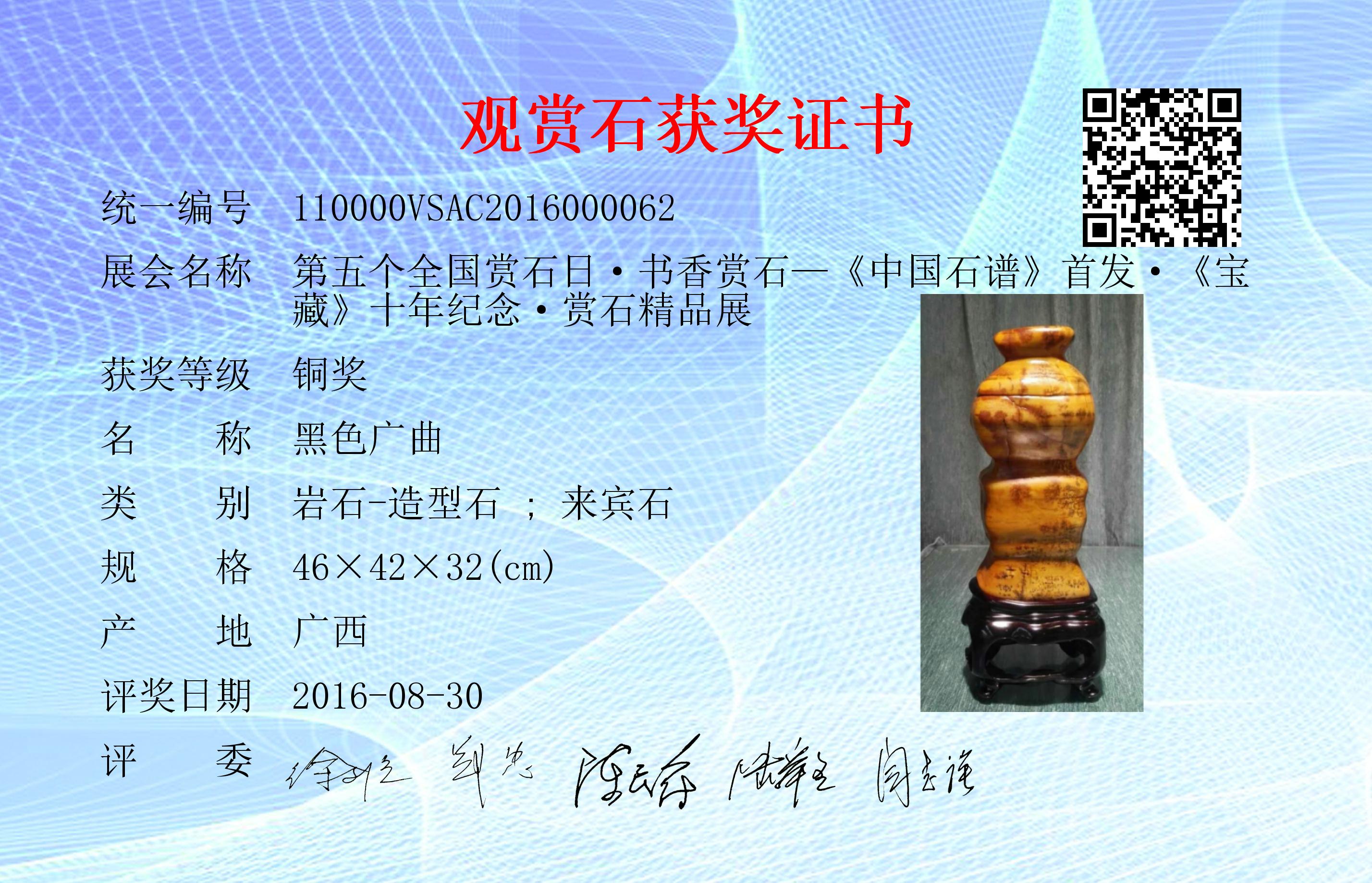 本届参展观赏石来源于《中国石谱》入谱精品石、中石协各专委会精选藏石、社会征集。本藏石通过社会征集参展。社会征集参展藏石评选规则:由网络评选(权重占比20%)、大众现场评选(权重占比35%)、专家现场评选(权重占比45%)三部分组成。