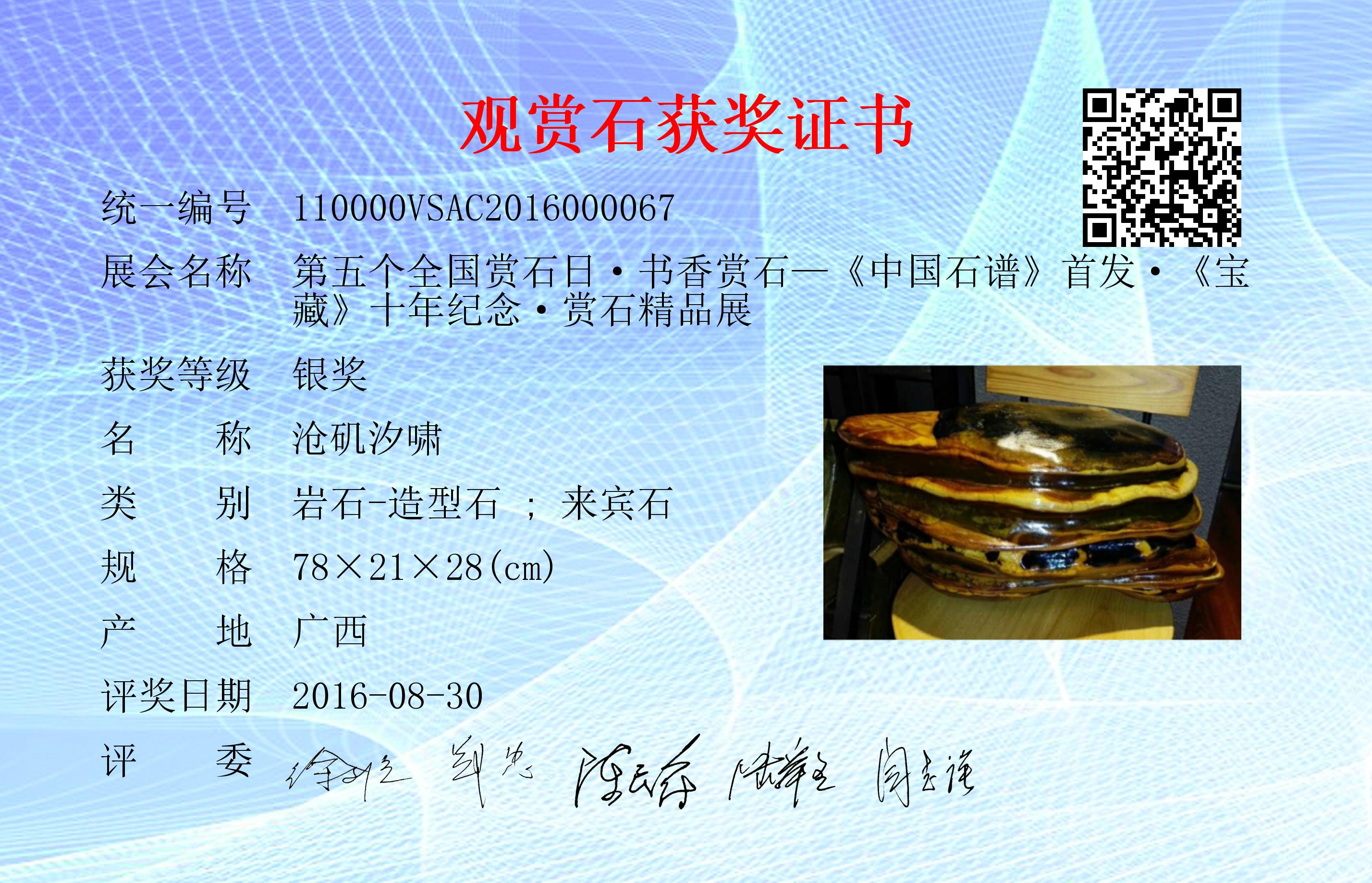 本届参展观赏石来源于《中国石谱》入谱精品石、中石协各专委会精选藏石、社会征集。本藏石通过社会征集参展。社会征集参展藏石评选规则:由网络评选(权重占比20%)、大众现场评选(权重占比35%)、专家现场评选(权重占比45%)三部分组成。