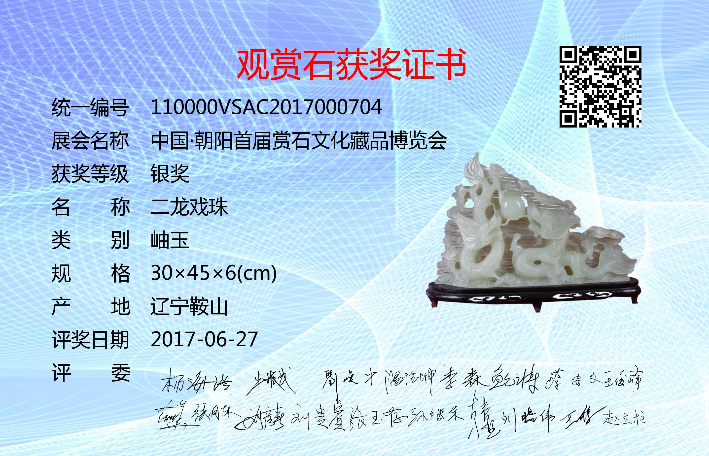 朝阳首届赏石文化藏品博览会评奖委员会成员:杨海浩、牛振武、刘焕中、温德坤、李森、鲍云涛、蔡安文、王俊峰、赵胜华、张月东、刘彦春、刘贵宾、张玉存、孙继东、韩墅、刘晓伟、王锋、赵立柱。
