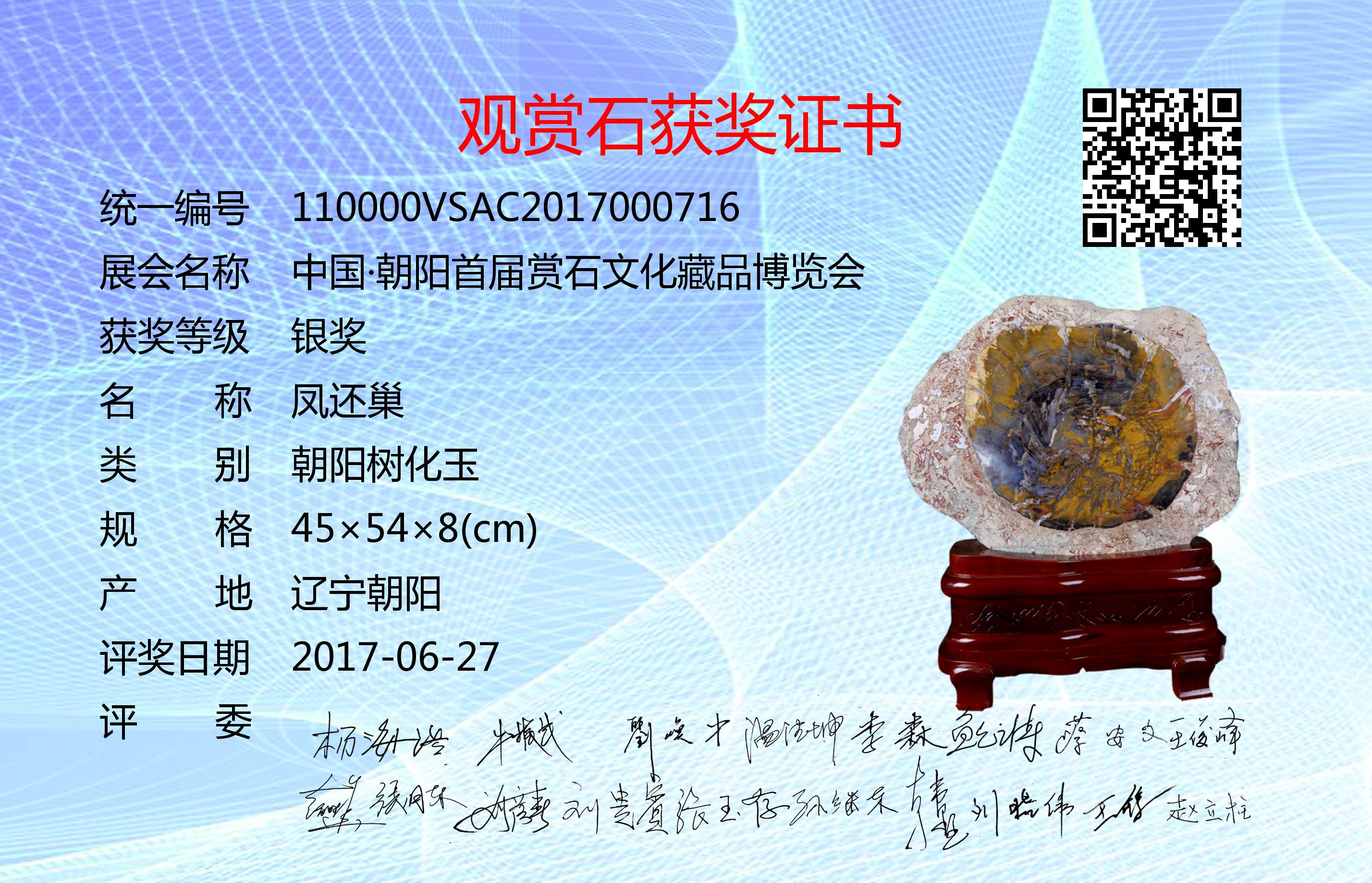 朝阳首届赏石文化藏品博览会评奖委员会成员:杨海浩、牛振武、刘焕中、温德坤、李森、鲍云涛、蔡安文、王俊峰、赵胜华、张月东、刘彦春、刘贵宾、张玉存、孙继东、韩墅、刘晓伟、王锋、赵立柱。