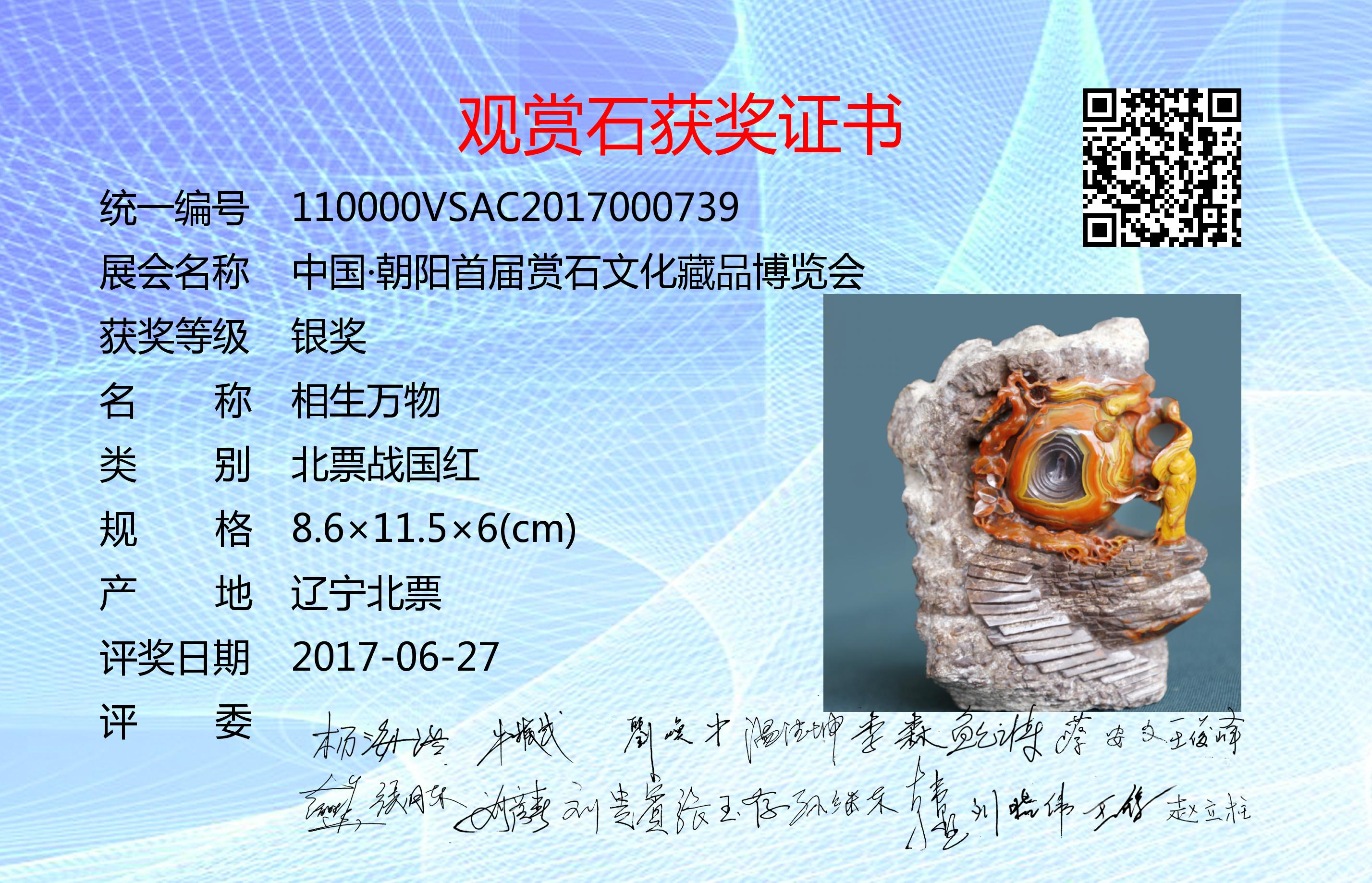 朝阳首届赏石文化藏品博览会评奖委员会成员:杨海浩、牛振武、刘焕中、温德坤、李森、鲍云涛、蔡安文、王俊峰、赵胜华、张月东、刘彦春、刘贵宾、张玉存、孙继东、韩墅、刘晓伟、王锋、赵立柱。