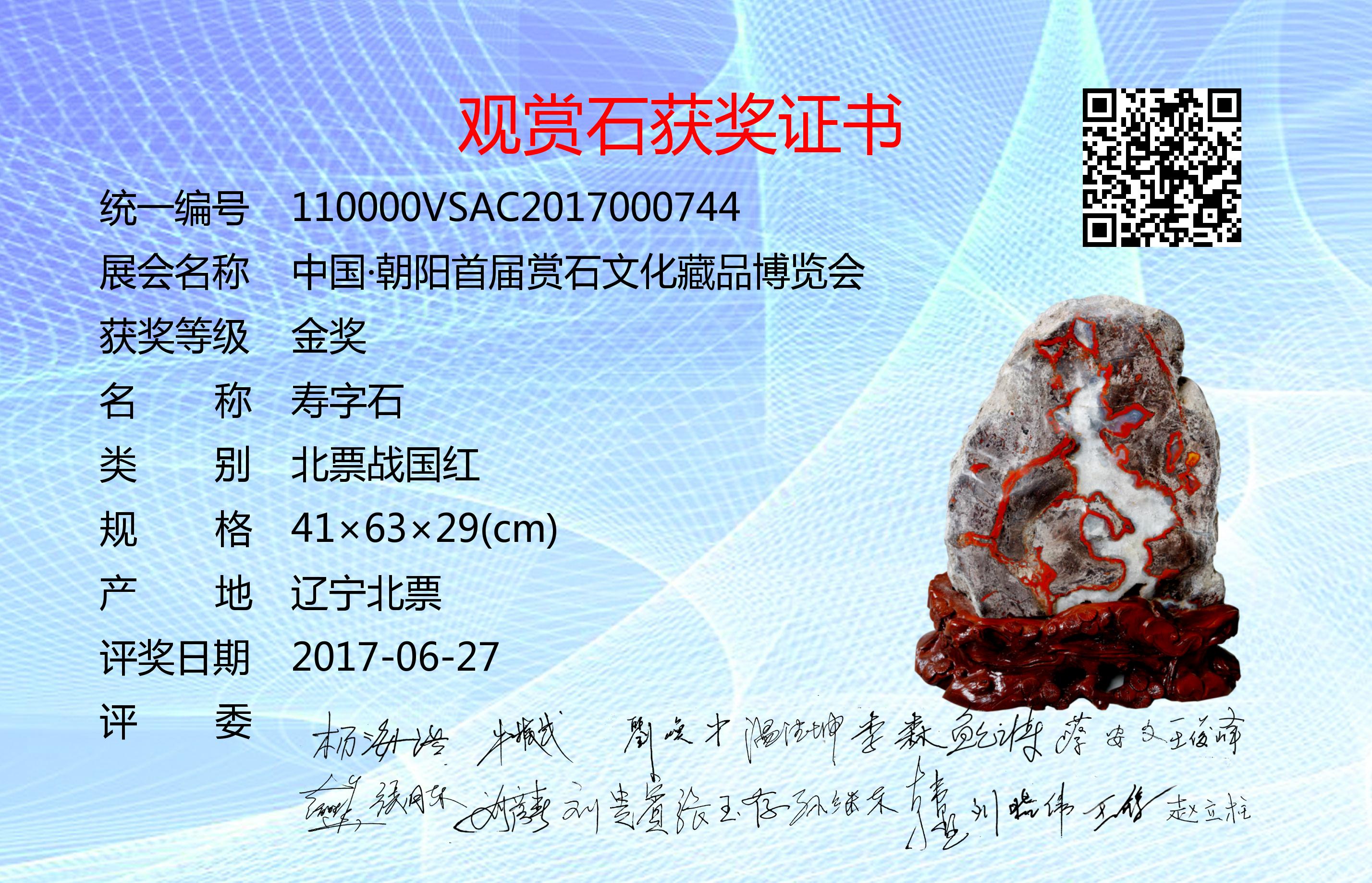 朝阳首届赏石文化藏品博览会评奖委员会成员:杨海浩、牛振武、刘焕中、温德坤、李森、鲍云涛、蔡安文、王俊峰、赵胜华、张月东、刘彦春、刘贵宾、张玉存、孙继东、韩墅、刘晓伟、王锋、赵立柱。