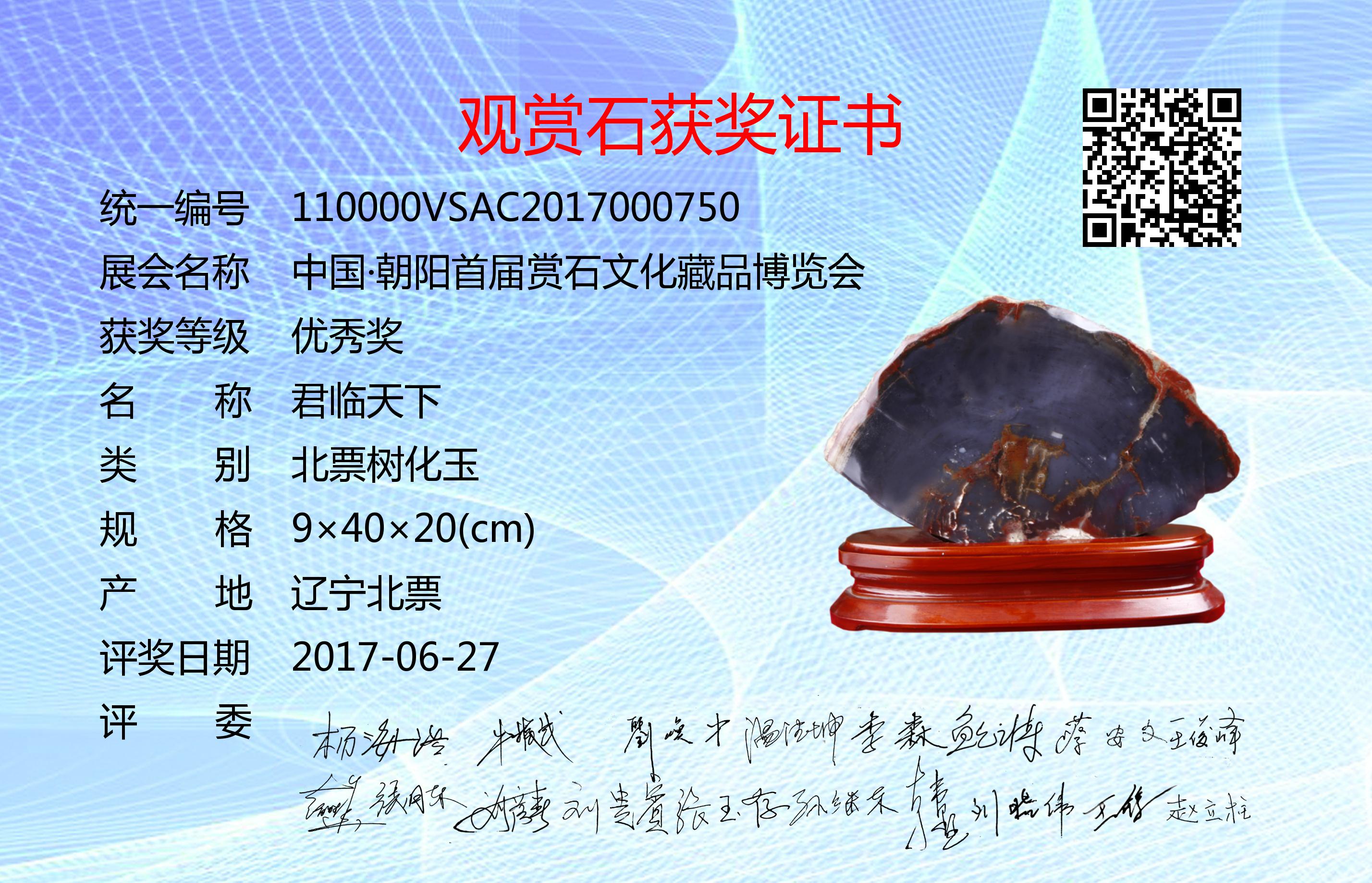 朝阳首届赏石文化藏品博览会评奖委员会成员:杨海浩、牛振武、刘焕中、温德坤、李森、鲍云涛、蔡安文、王俊峰、赵胜华、张月东、刘彦春、刘贵宾、张玉存、孙继东、韩墅、刘晓伟、王锋、赵立柱。