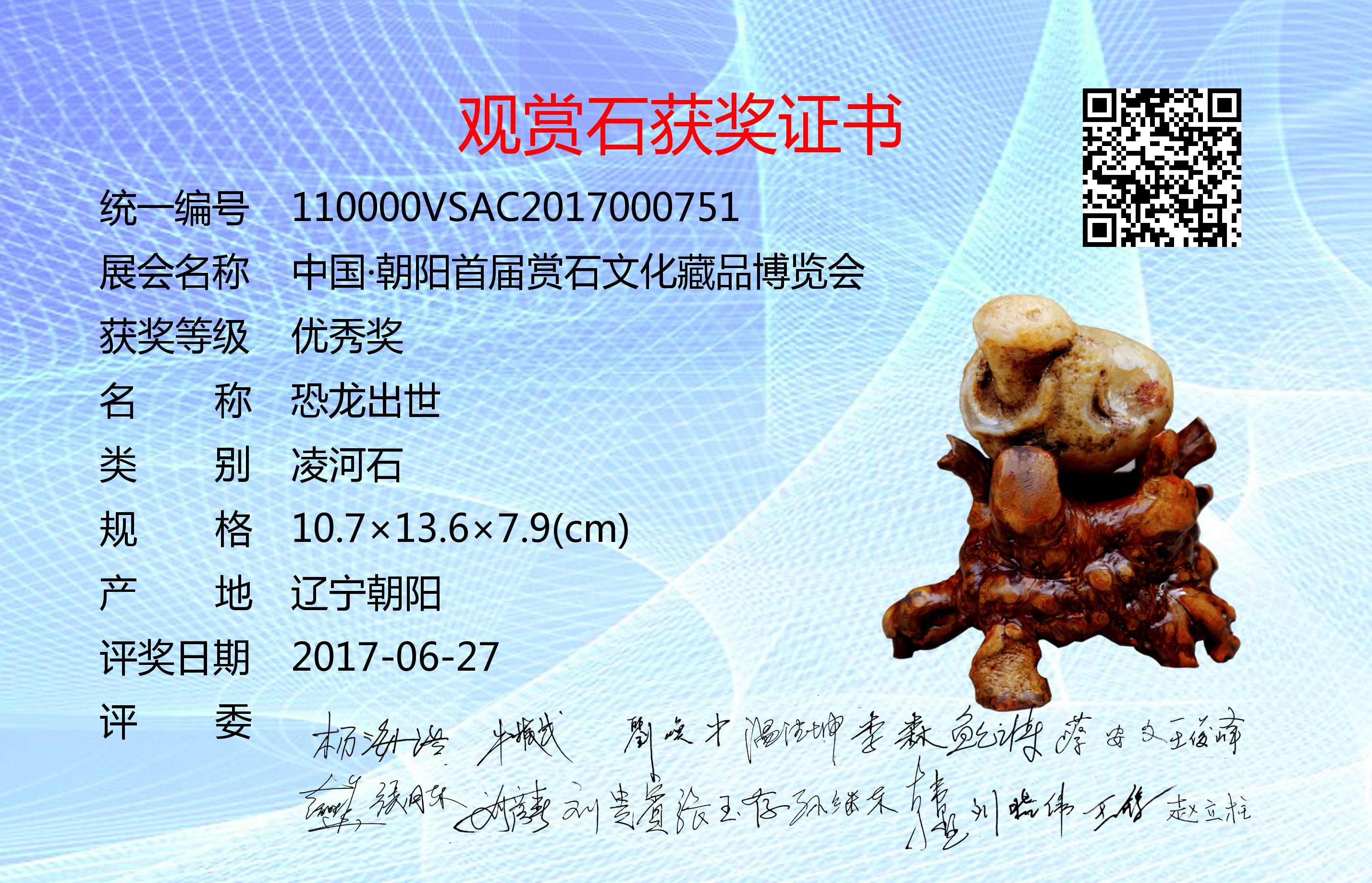 朝阳首届赏石文化藏品博览会评奖委员会成员:杨海浩、牛振武、刘焕中、温德坤、李森、鲍云涛、蔡安文、王俊峰、赵胜华、张月东、刘彦春、刘贵宾、张玉存、孙继东、韩墅、刘晓伟、王锋、赵立柱。