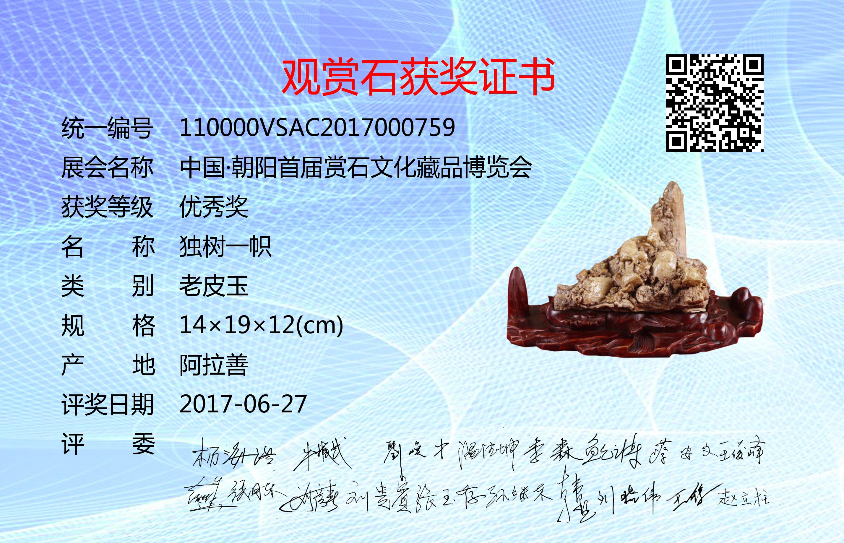 朝阳首届赏石文化藏品博览会评奖委员会成员:杨海浩、牛振武、刘焕中、温德坤、李森、鲍云涛、蔡安文、王俊峰、赵胜华、张月东、刘彦春、刘贵宾、张玉存、孙继东、韩墅、刘晓伟、王锋、赵立柱。