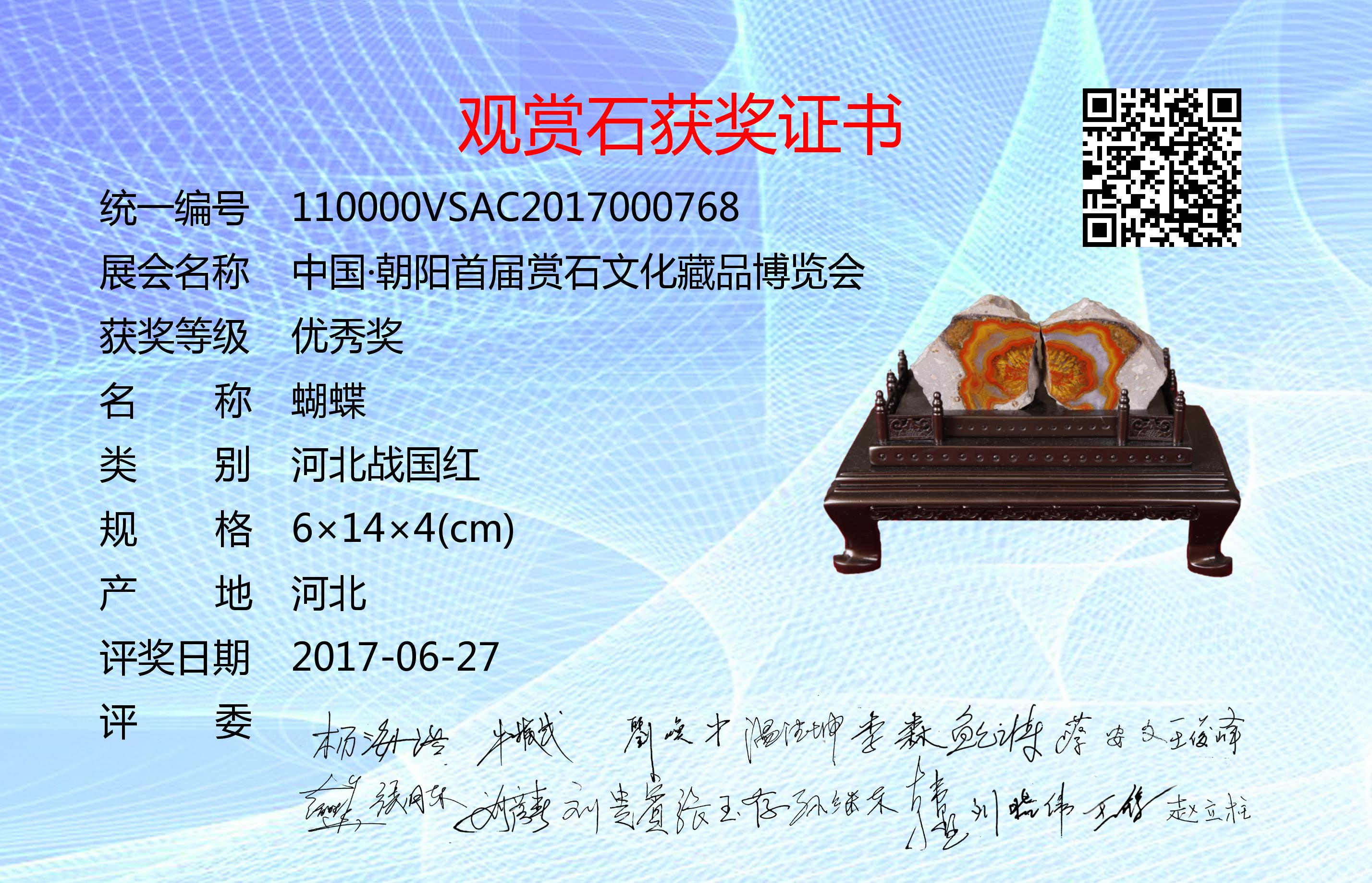 朝阳首届赏石文化藏品博览会评奖委员会成员:杨海浩、牛振武、刘焕中、温德坤、李森、鲍云涛、蔡安文、王俊峰、赵胜华、张月东、刘彦春、刘贵宾、张玉存、孙继东、韩墅、刘晓伟、王锋、赵立柱。