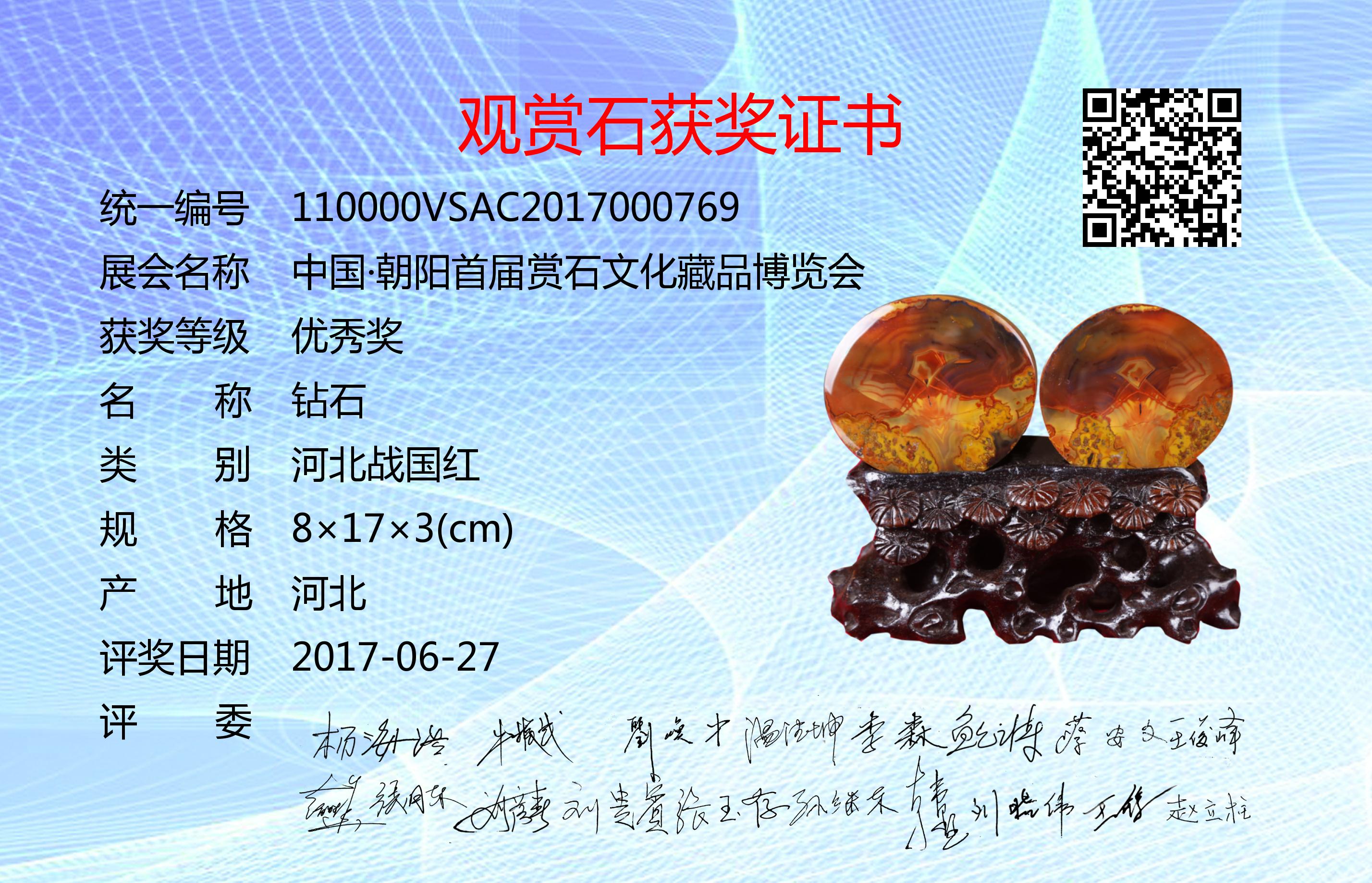 朝阳首届赏石文化藏品博览会评奖委员会成员:杨海浩、牛振武、刘焕中、温德坤、李森、鲍云涛、蔡安文、王俊峰、赵胜华、张月东、刘彦春、刘贵宾、张玉存、孙继东、韩墅、刘晓伟、王锋、赵立柱。