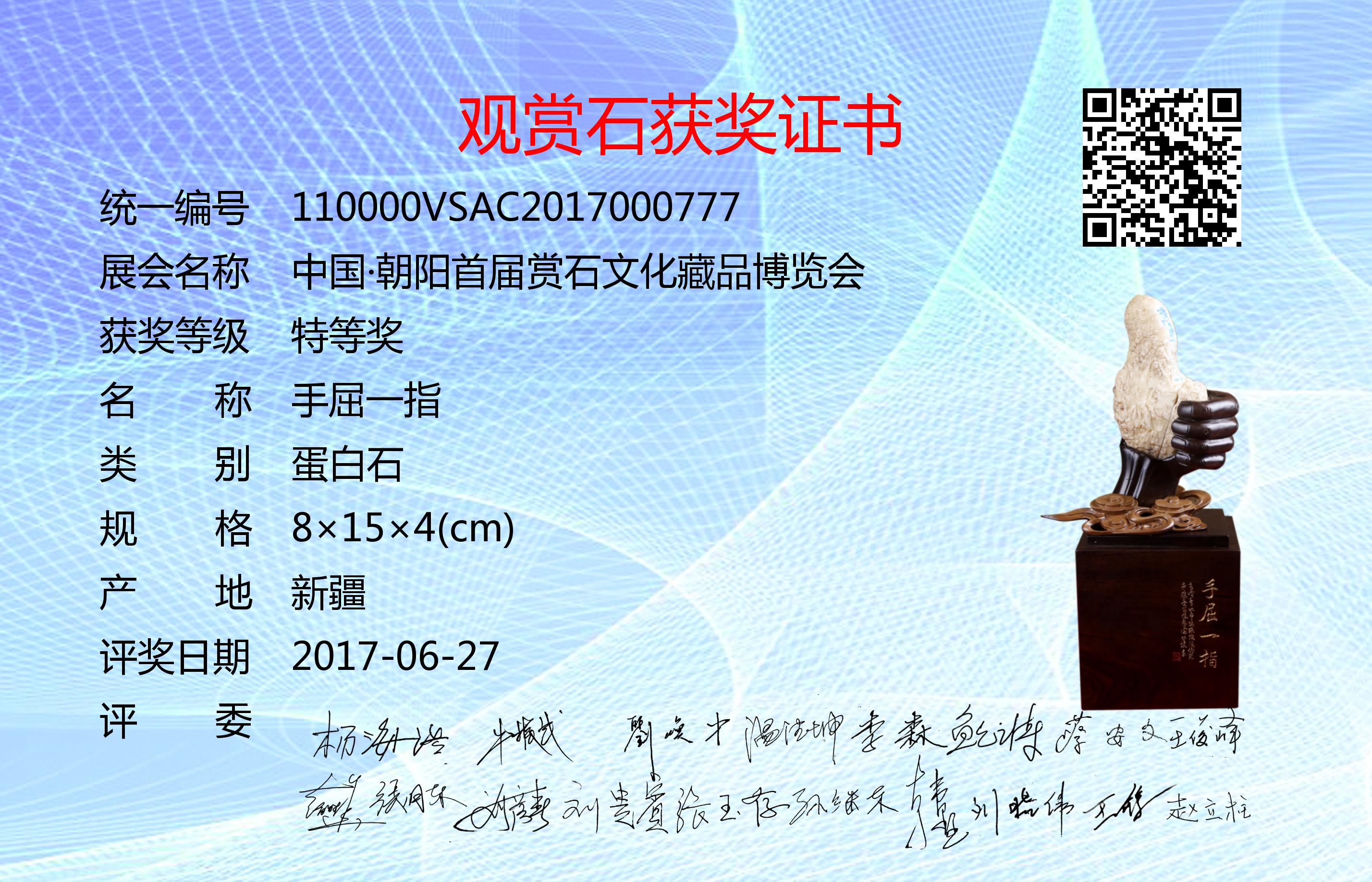 朝阳首届赏石文化藏品博览会评奖委员会成员:杨海浩、牛振武、刘焕中、温德坤、李森、鲍云涛、蔡安文、王俊峰、赵胜华、张月东、刘彦春、刘贵宾、张玉存、孙继东、韩墅、刘晓伟、王锋、赵立柱。