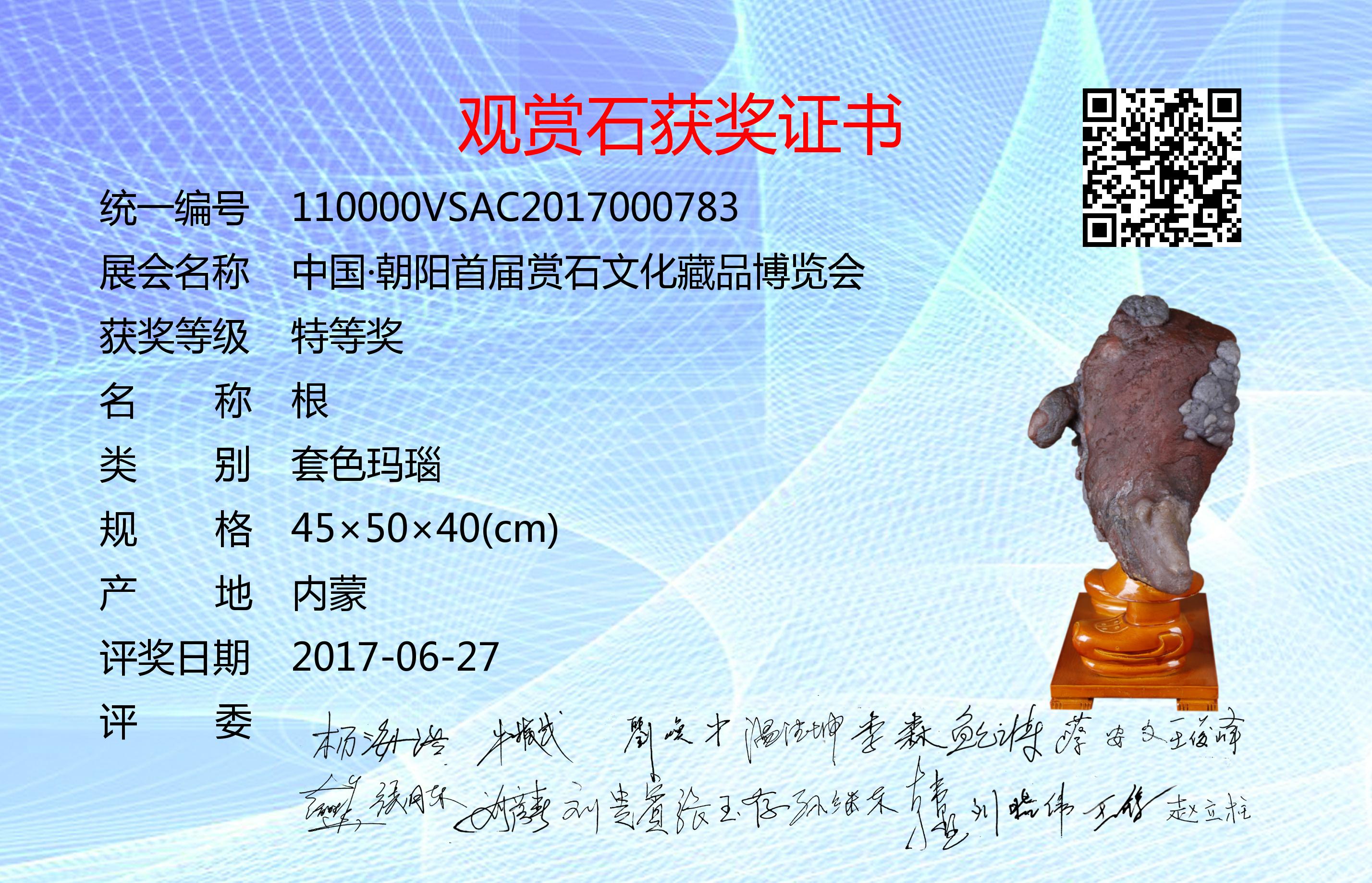 朝阳首届赏石文化藏品博览会评奖委员会成员:杨海浩、牛振武、刘焕中、温德坤、李森、鲍云涛、蔡安文、王俊峰、赵胜华、张月东、刘彦春、刘贵宾、张玉存、孙继东、韩墅、刘晓伟、王锋、赵立柱。