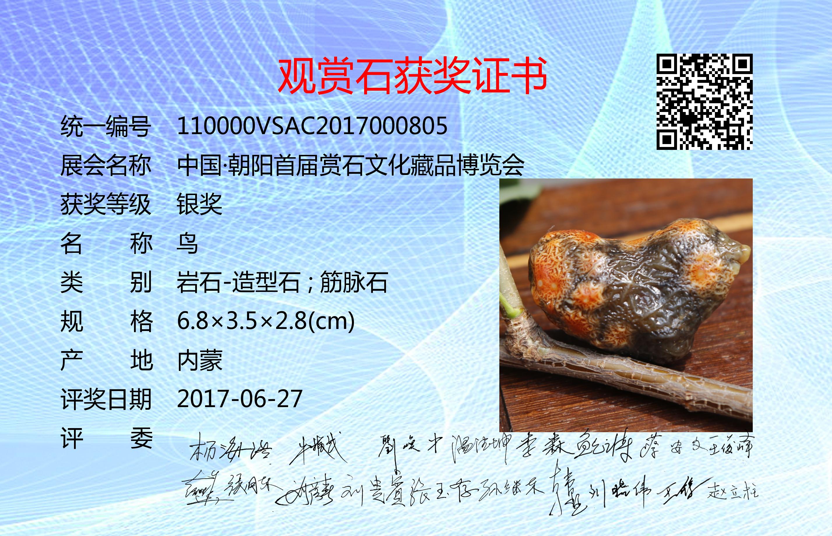 朝阳首届赏石文化藏品博览会评奖委员会成员:杨海浩、牛振武、刘焕中、温德坤、李森、鲍云涛、蔡安文、王俊峰、赵胜华、张月东、刘彦春、刘贵宾、张玉存、孙继东、韩墅、刘晓伟、王锋、赵立柱。