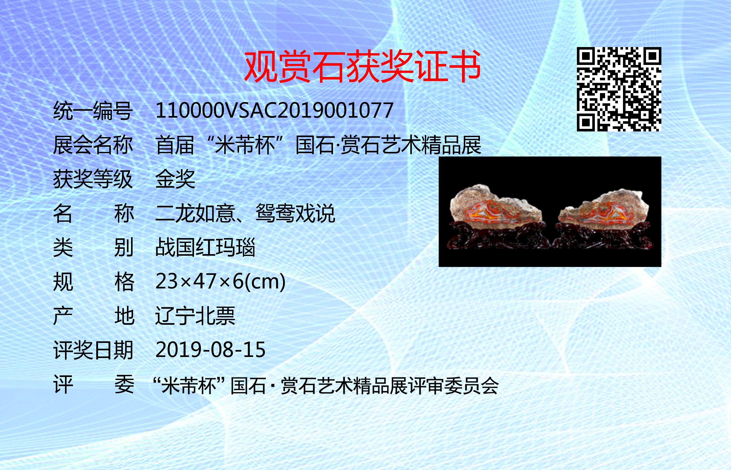 价格面议。北京美都收藏大观园2015首届战国红玛瑙北京博览会获得银奖;2019唐山冀东古玩城奇石根艺玉器文玩博览会获得金奖
