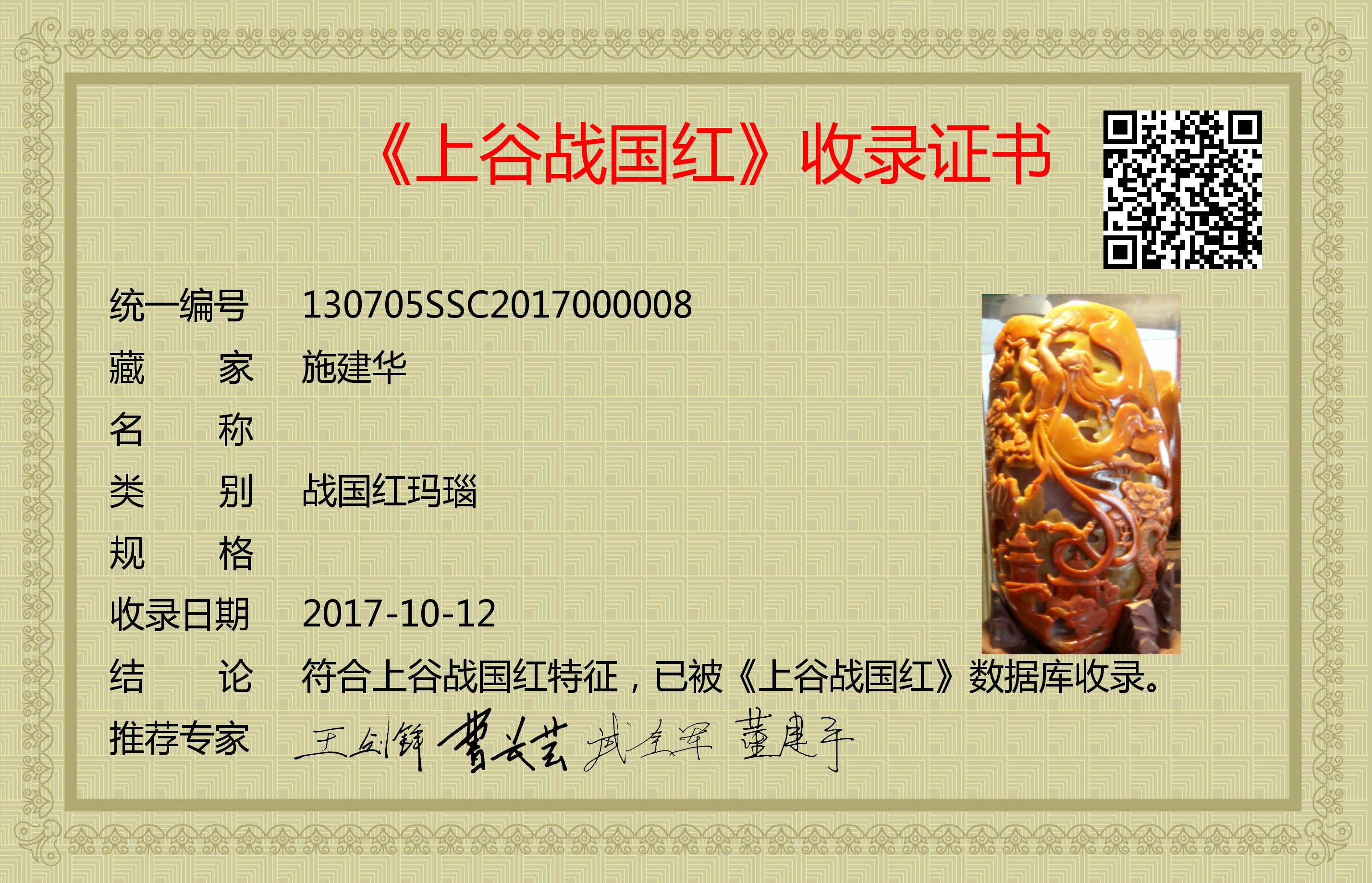 符合上谷战国红特征,已被《上谷战国红》数据库收录。