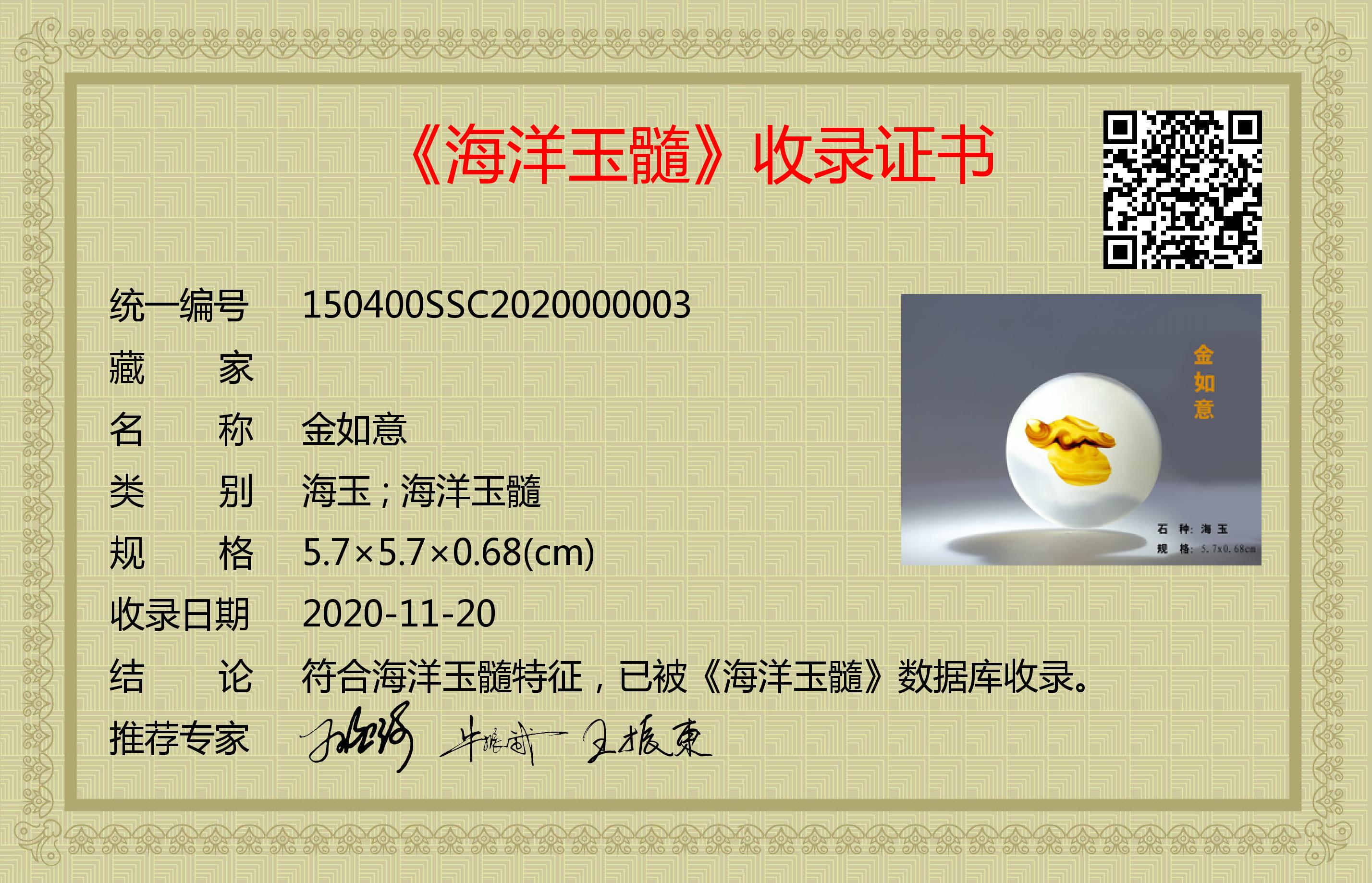 符合海洋玉髓特征,已被《海洋玉髓》数据库收录。