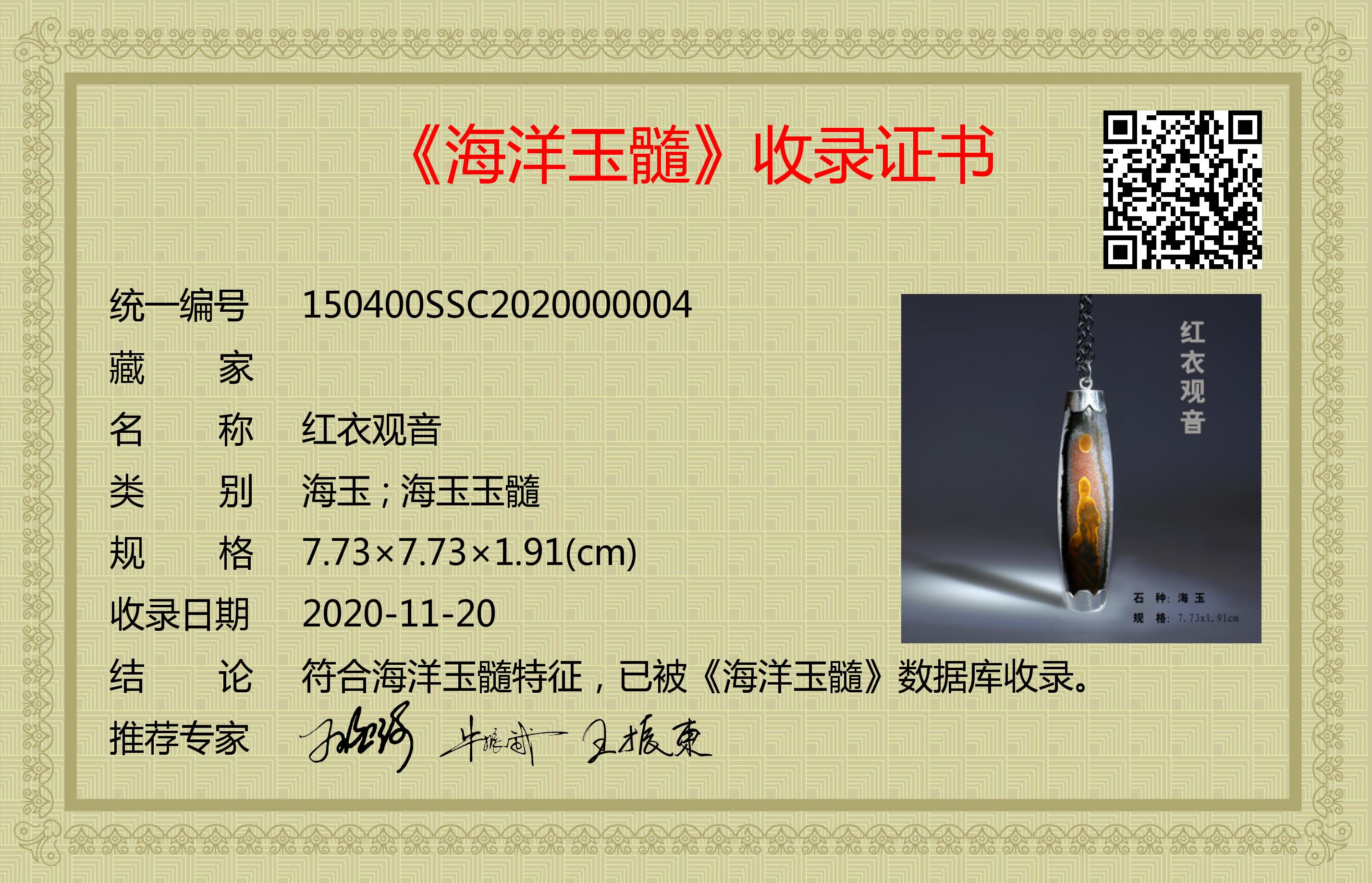 符合海洋玉髓特征,已被《海洋玉髓》数据库收录。