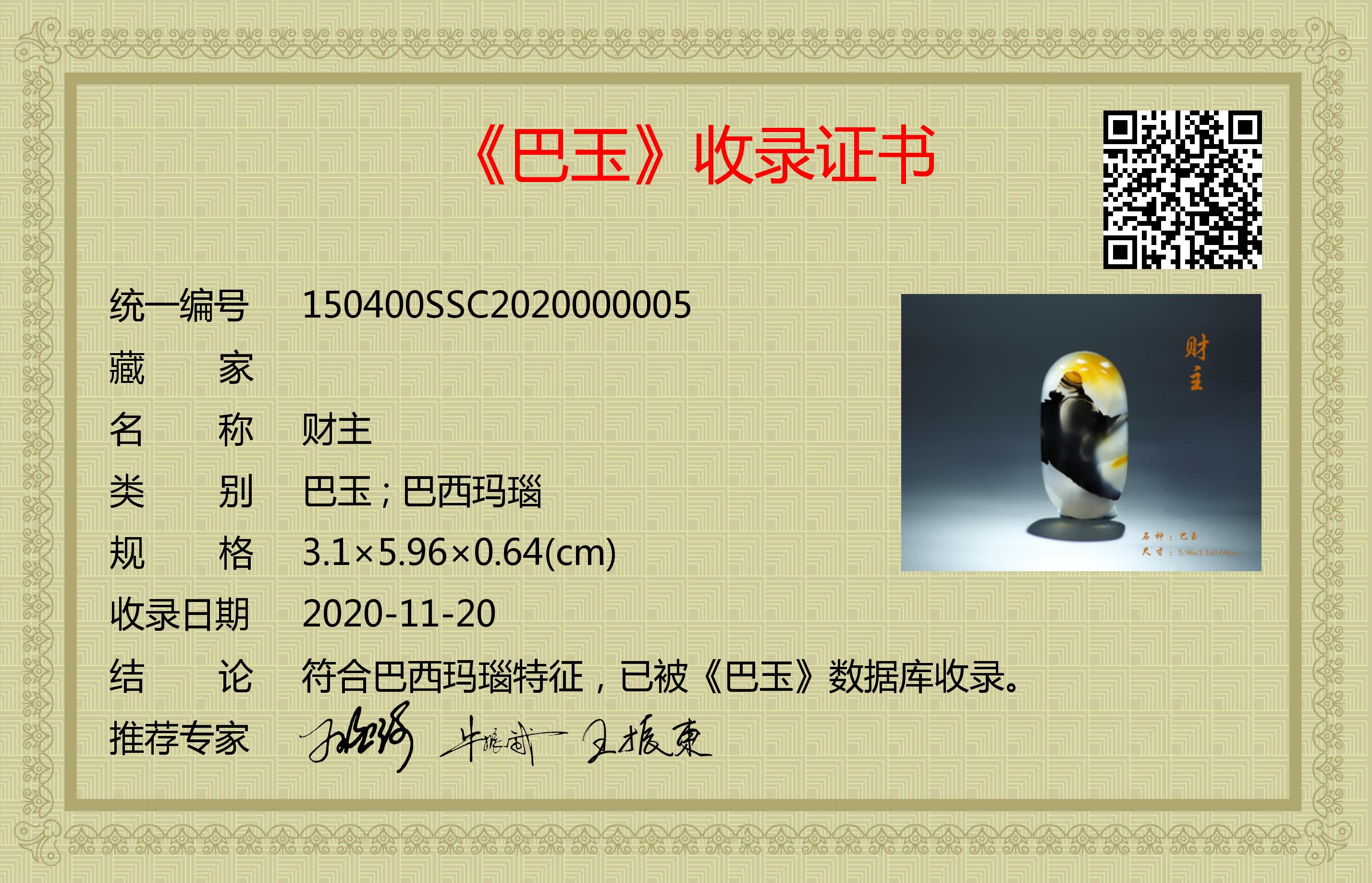 符合巴西玛瑙特征,已被《巴玉》数据库收录。