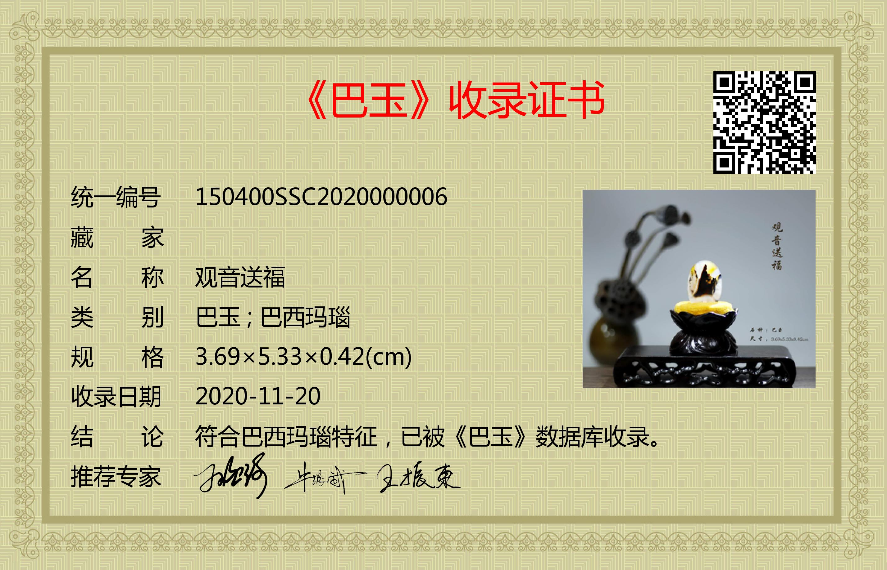 符合巴西玛瑙特征,已被《巴玉》数据库收录。