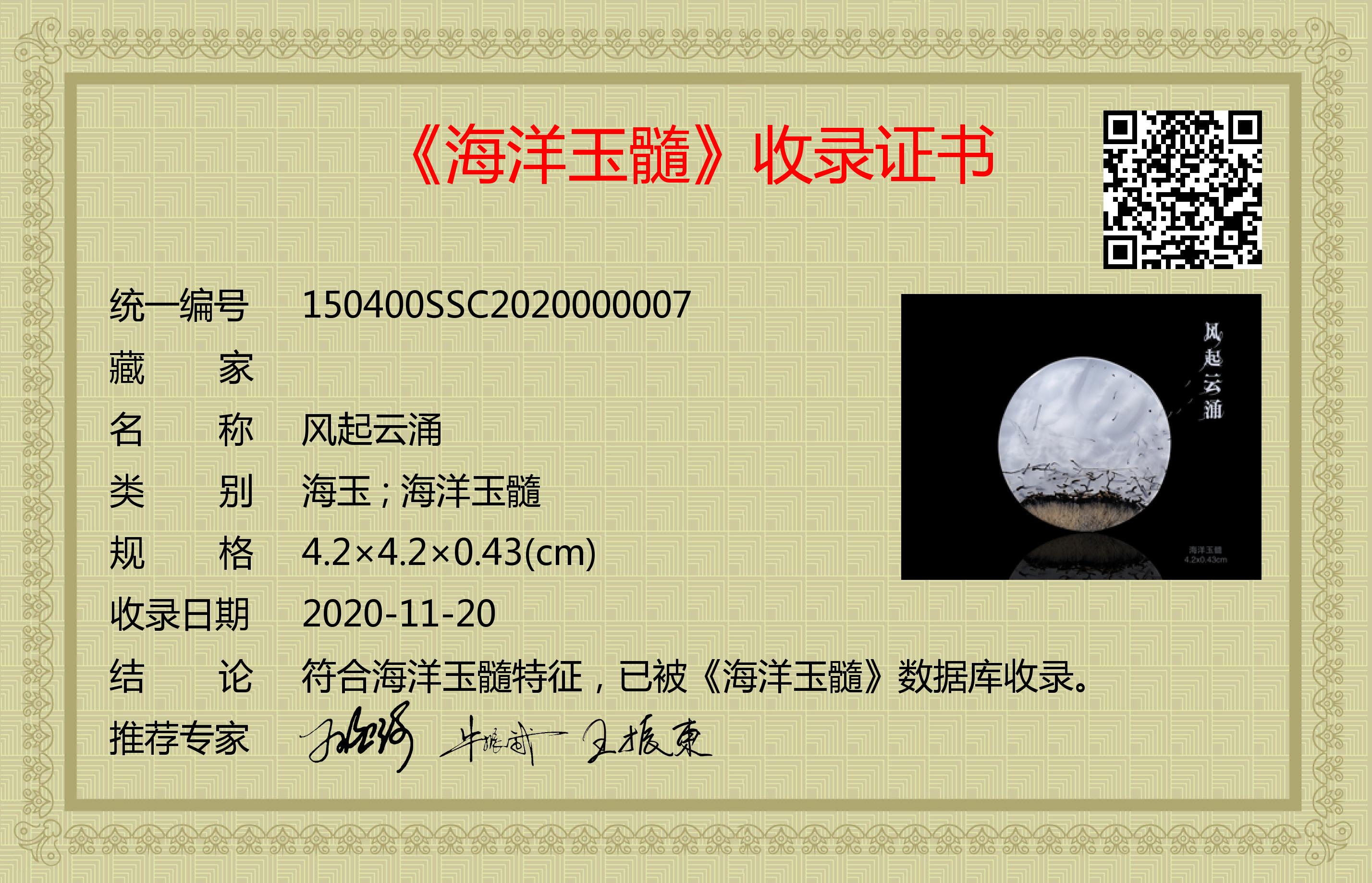 符合海洋玉髓特征,已被《海洋玉髓》数据库收录。