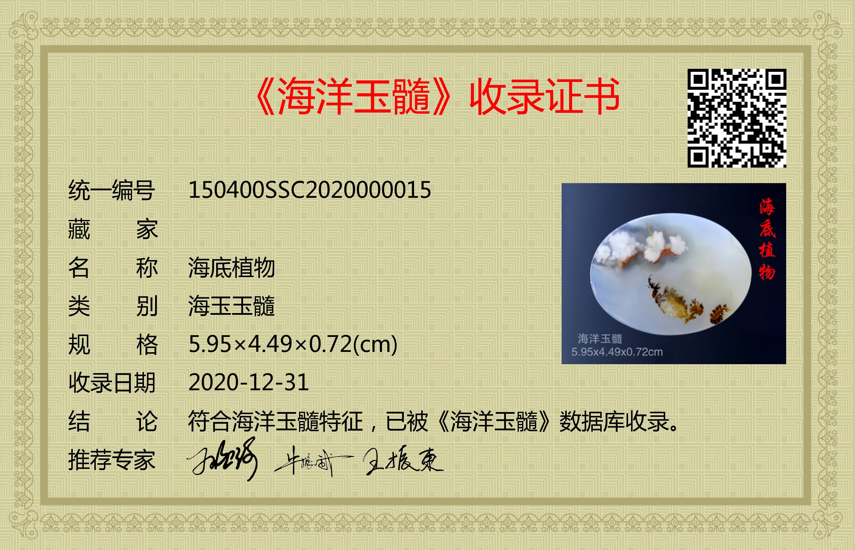 符合海洋玉髓特征,已被《海洋玉髓》数据库收录。