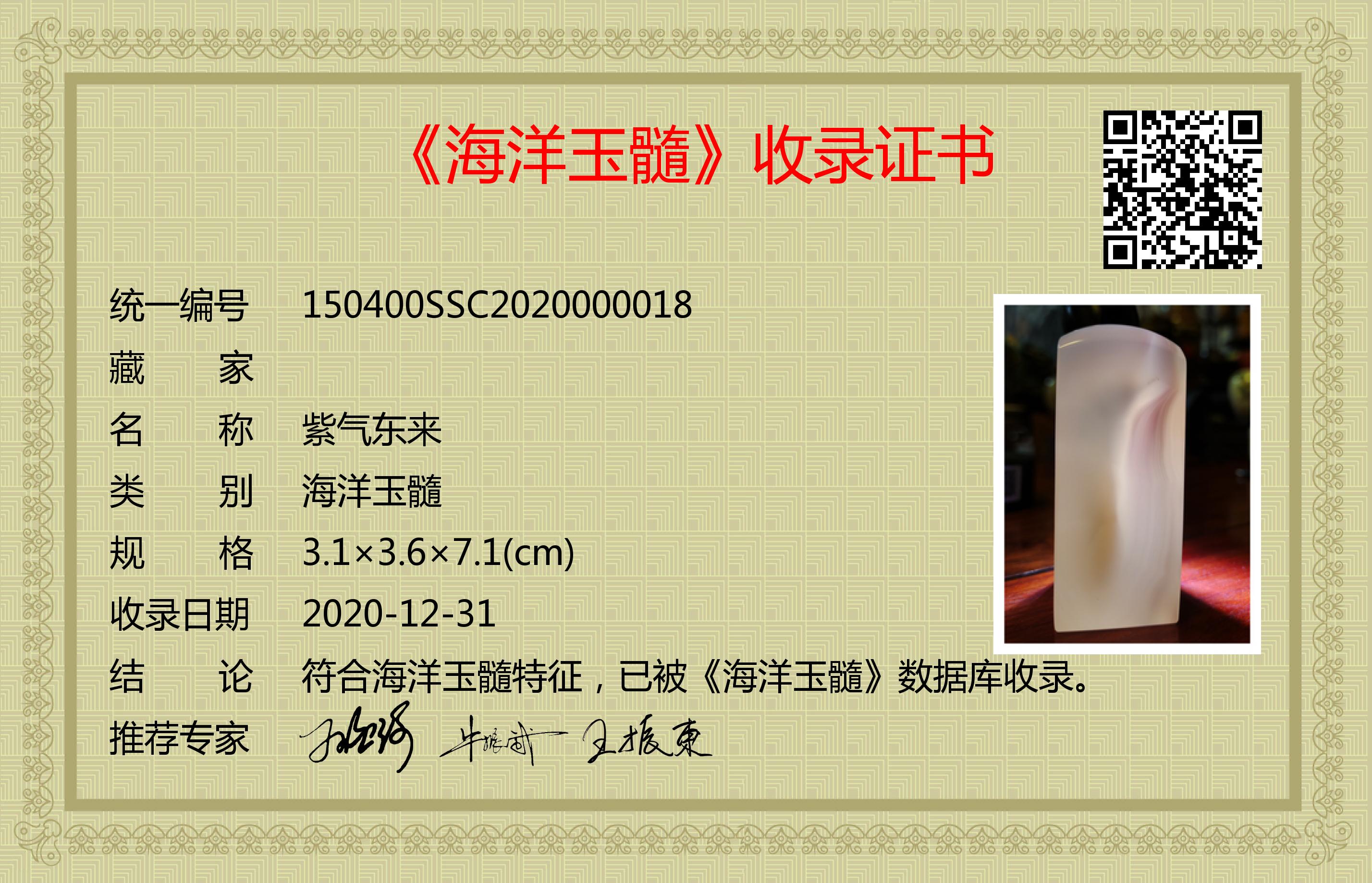 符合海洋玉髓特征,已被《海洋玉髓》数据库收录。