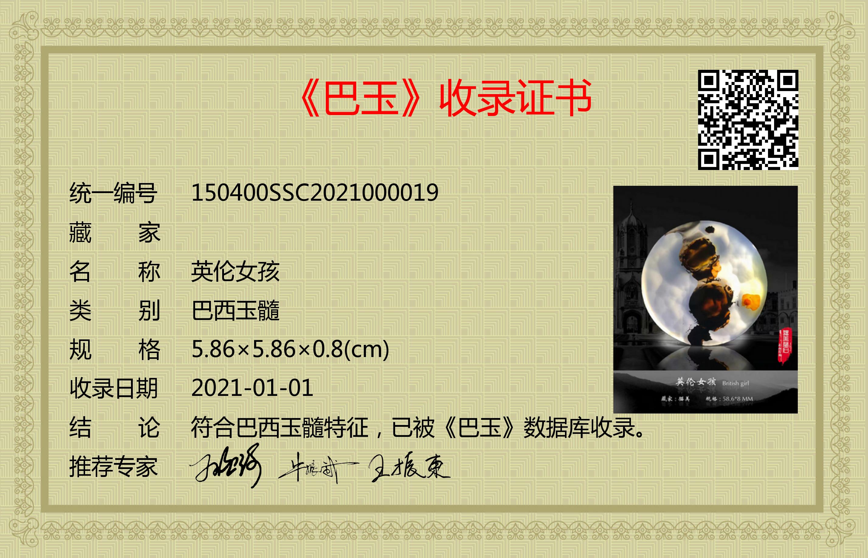 符合巴西玉髓特征,已被《巴玉》数据库收录。