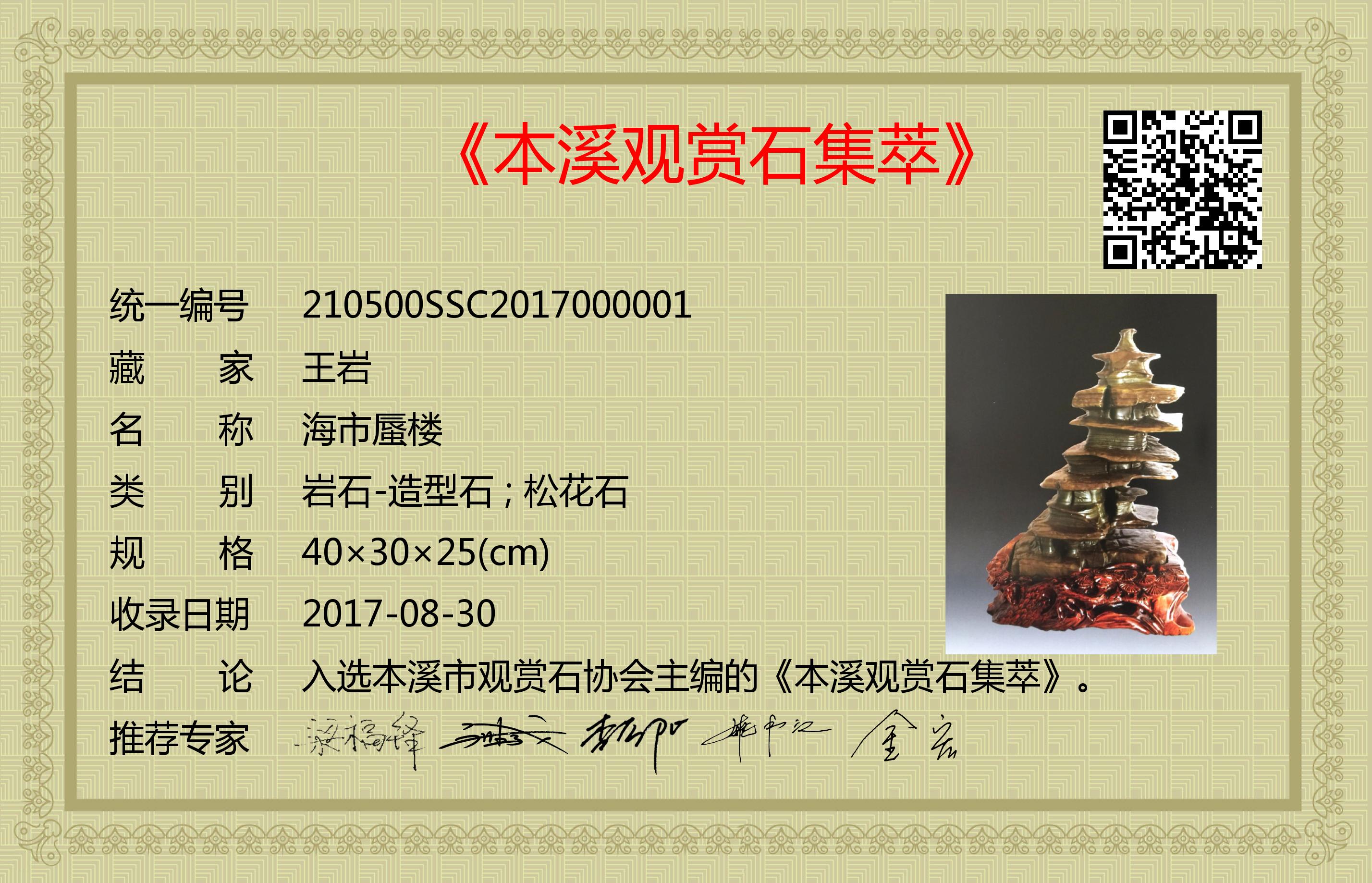 入选本溪市观赏石协会主编的《本溪观赏石集萃》。