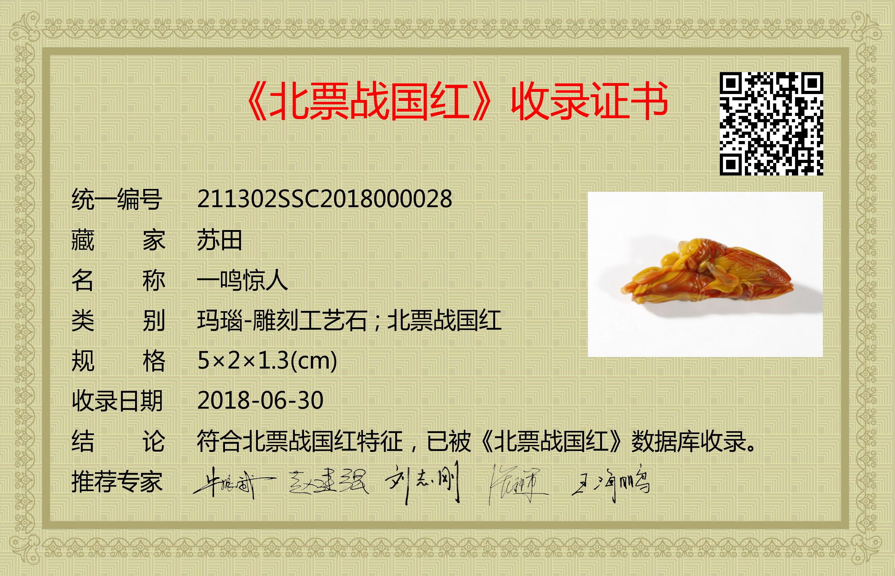 符合北票战国红特征,已被《北票战国红》数据库收录。