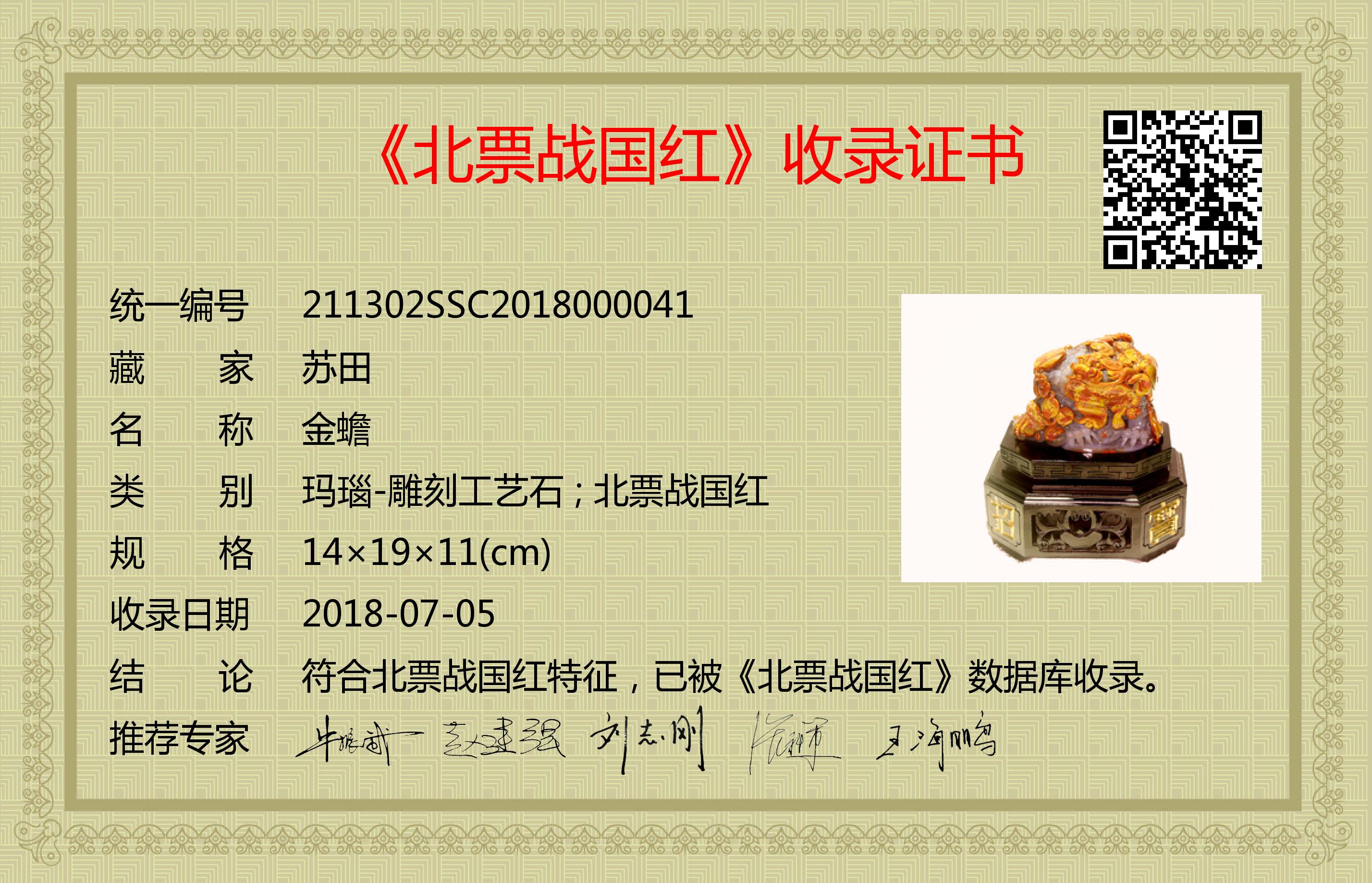 符合北票战国红特征,已被《北票战国红》数据库收录。