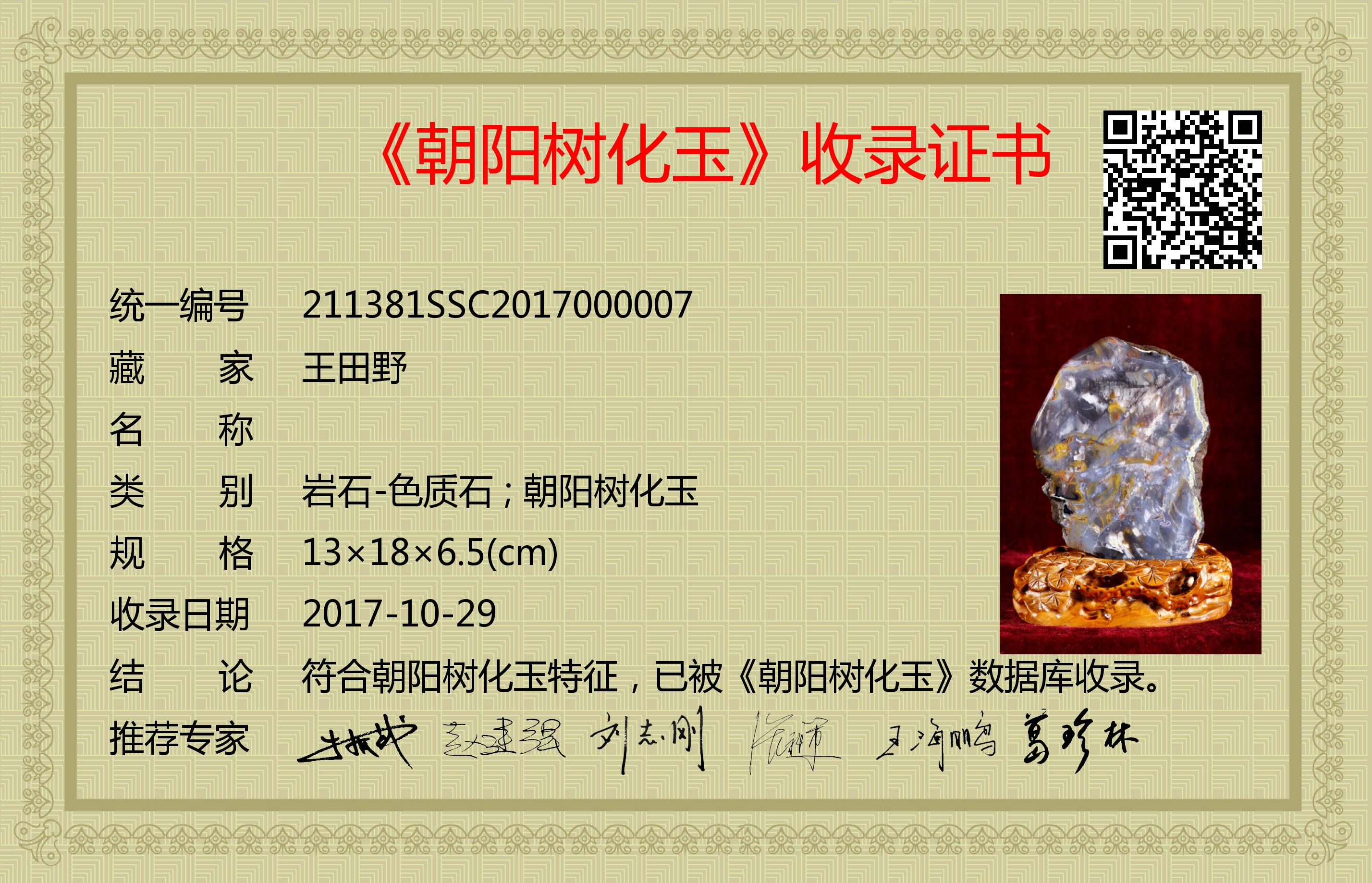 符合朝阳树化玉特征,已被《朝阳树化玉》数据库收录。