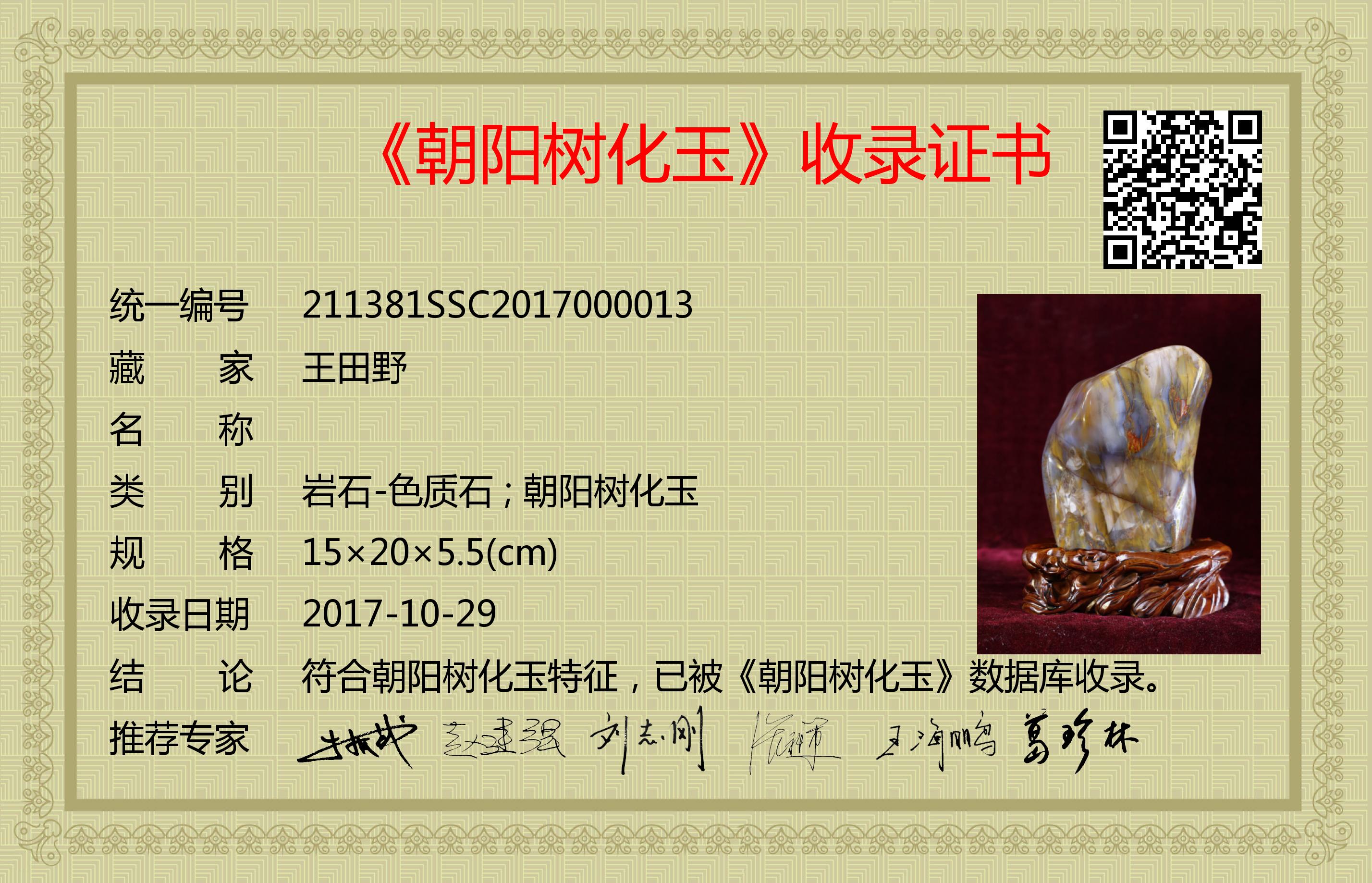 符合朝阳树化玉特征,已被《朝阳树化玉》数据库收录。
