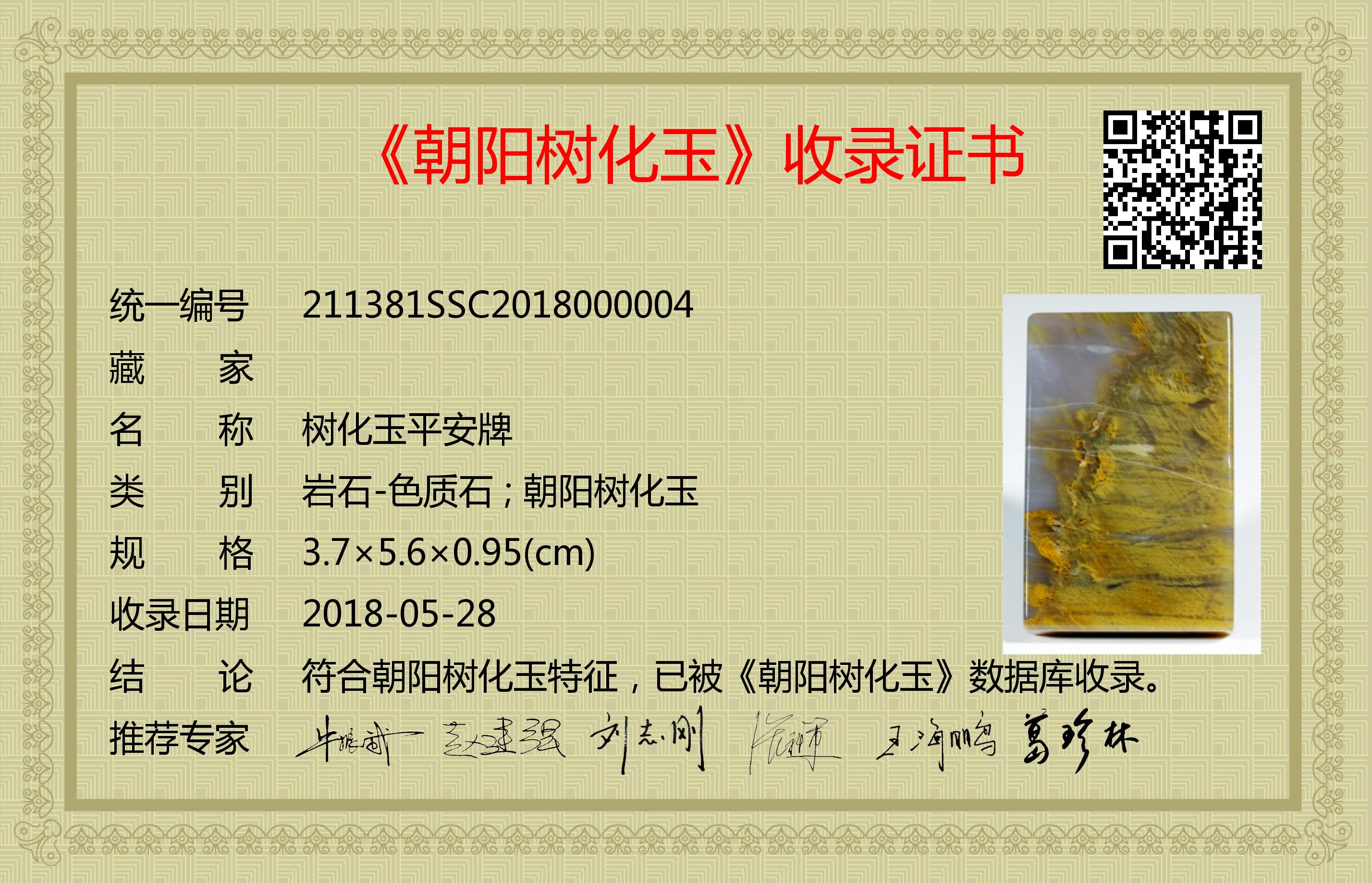 符合朝阳树化玉特征,已被《朝阳树化玉》数据库收录。