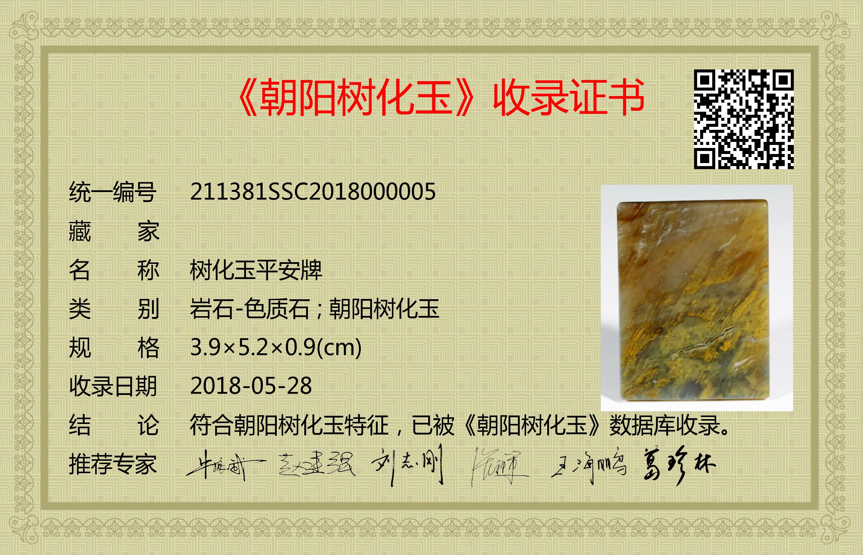符合朝阳树化玉特征,已被《朝阳树化玉》数据库收录。