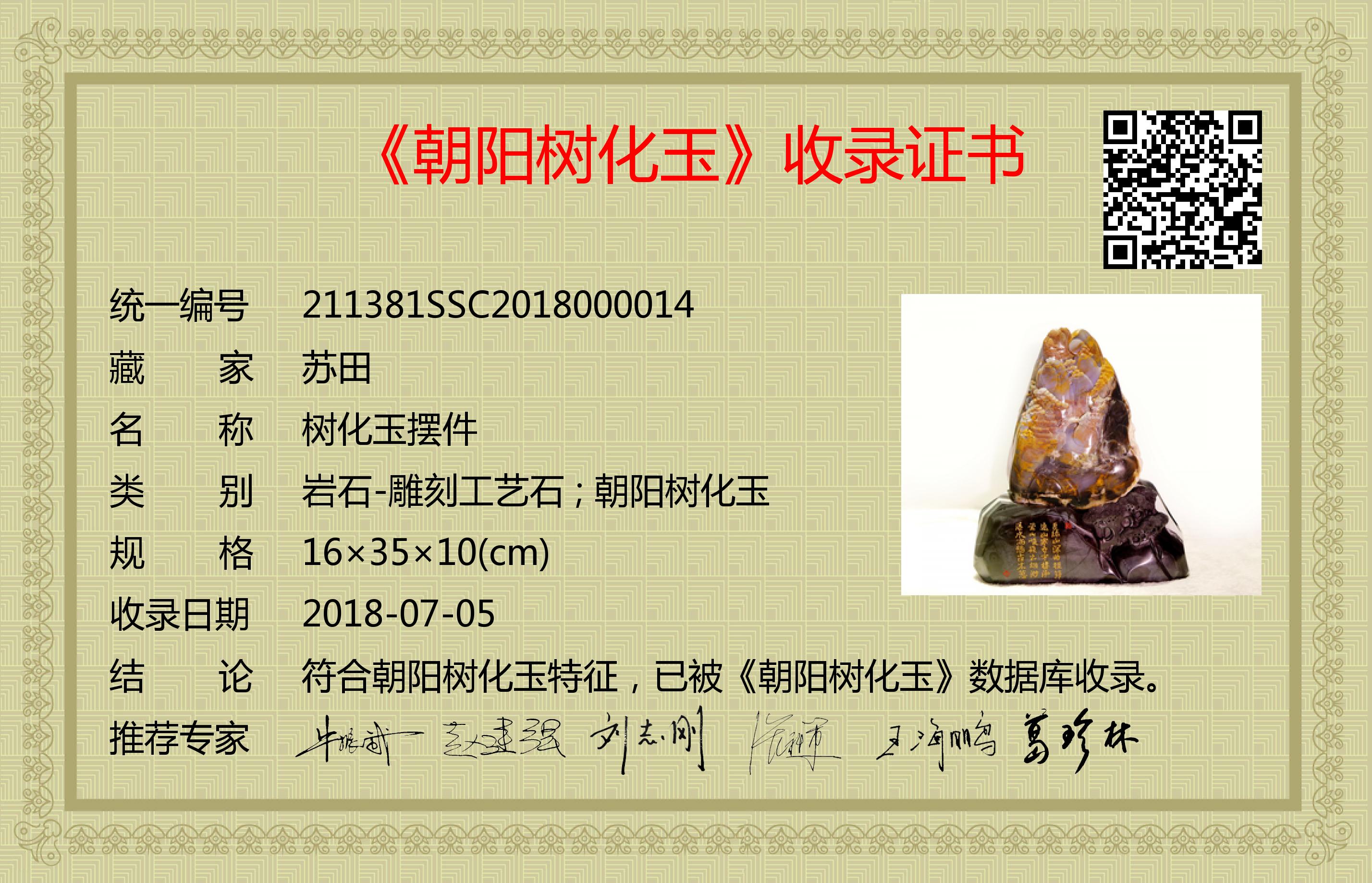 符合朝阳树化玉特征,已被《朝阳树化玉》数据库收录。