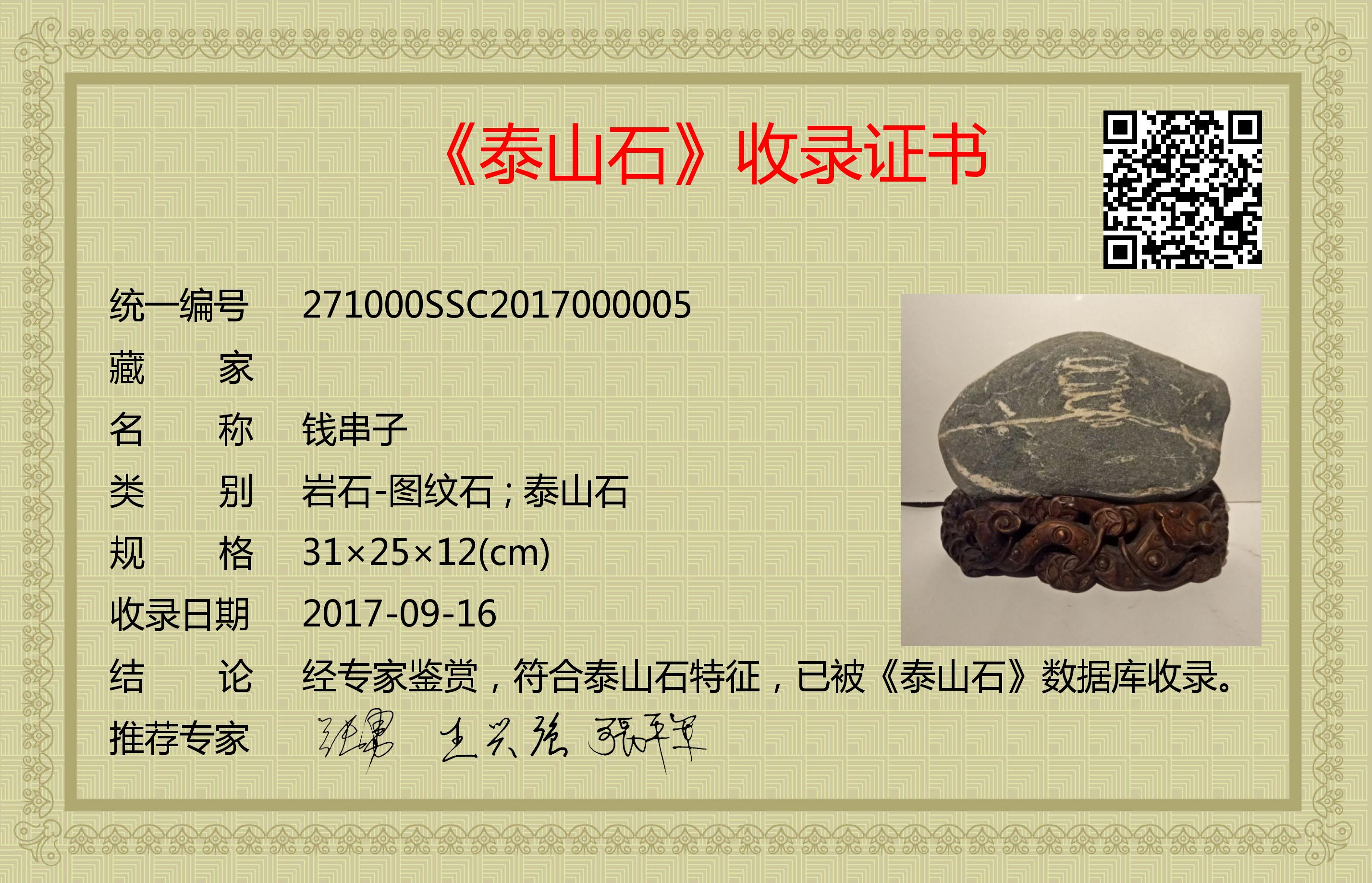 经专家鉴赏,符合泰山石特征,已被《泰山石》数据库收录。