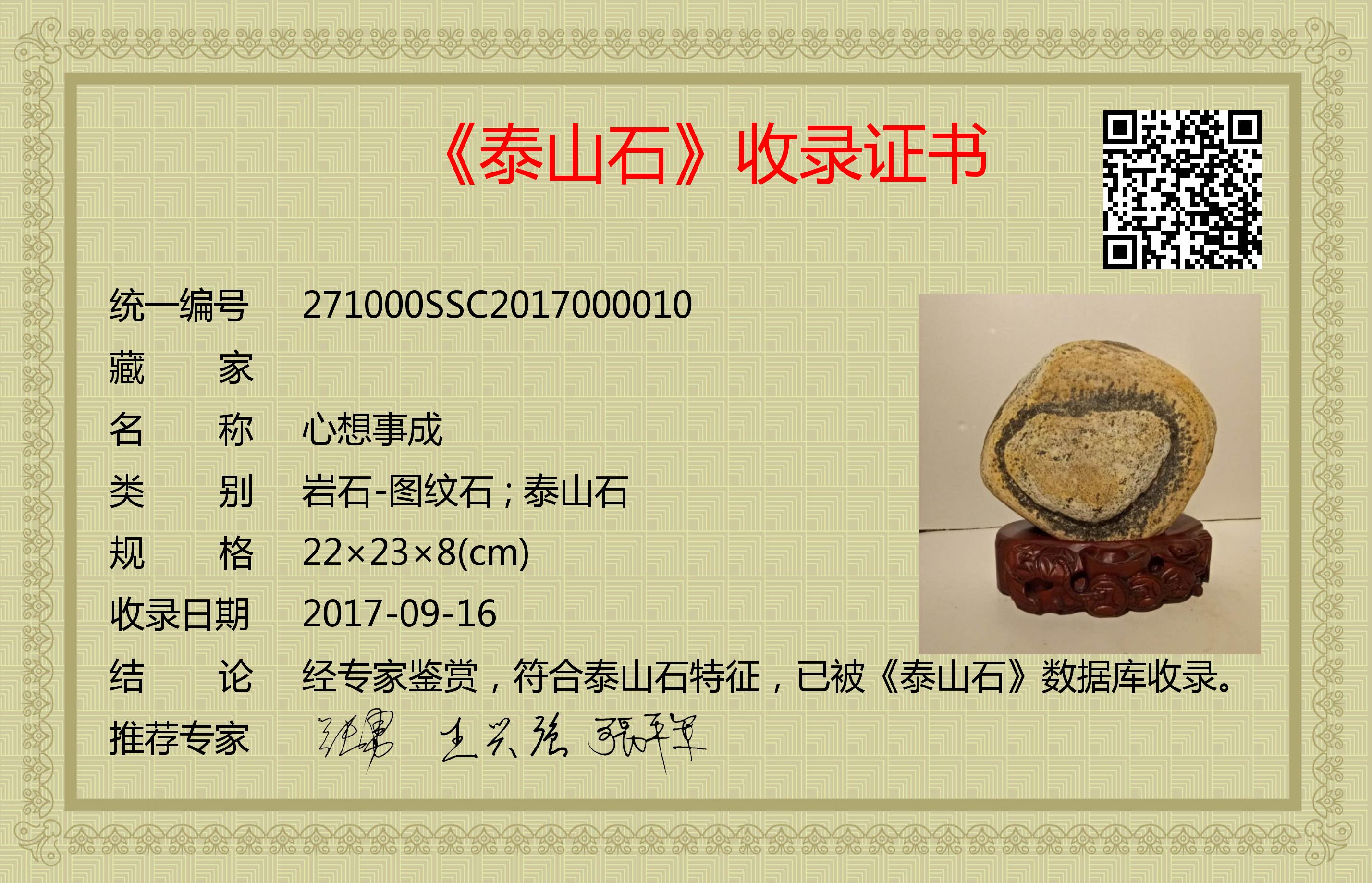 经专家鉴赏,符合泰山石特征,已被《泰山石》数据库收录。