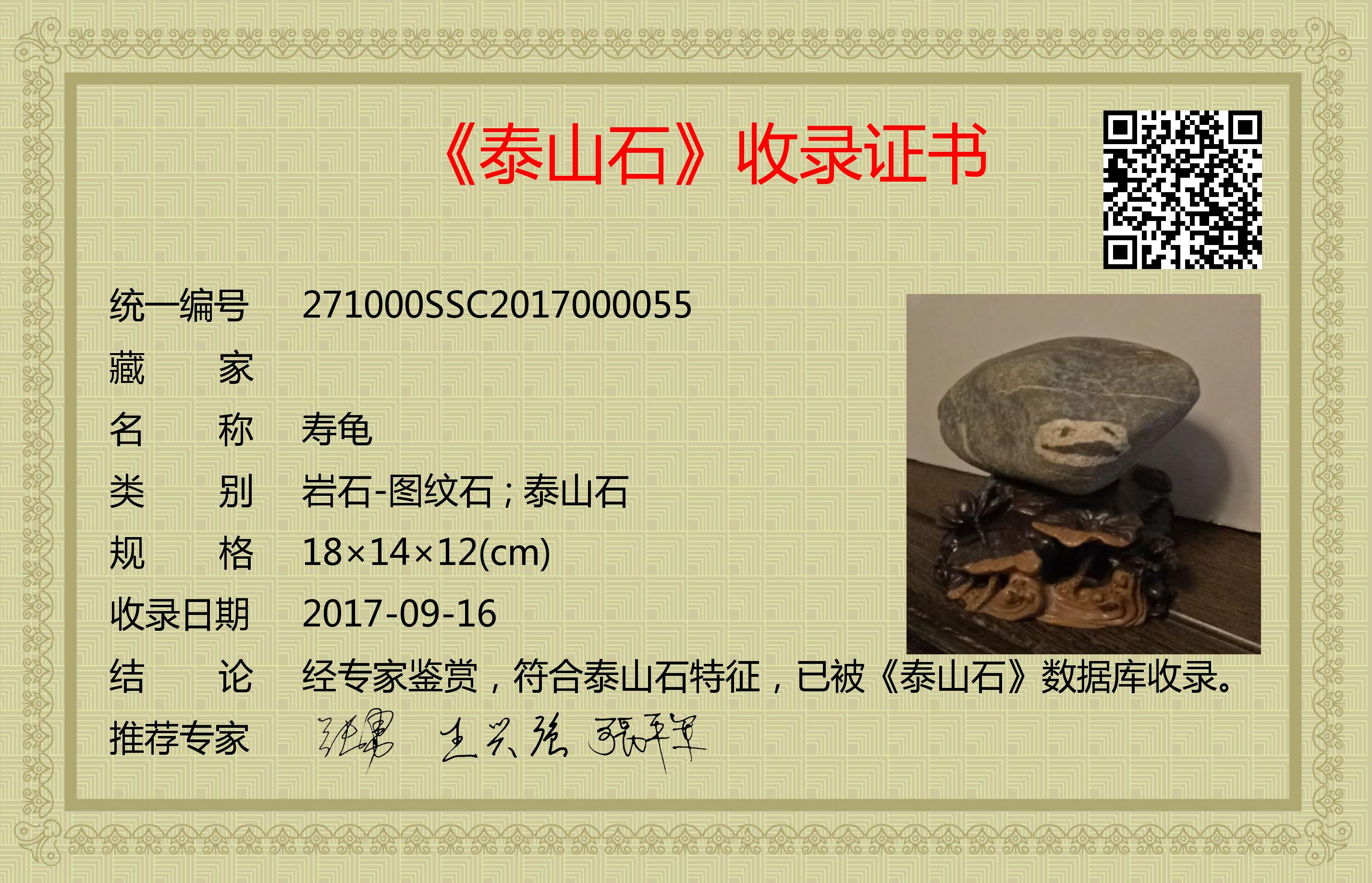 经专家鉴赏,符合泰山石特征,已被《泰山石》数据库收录。