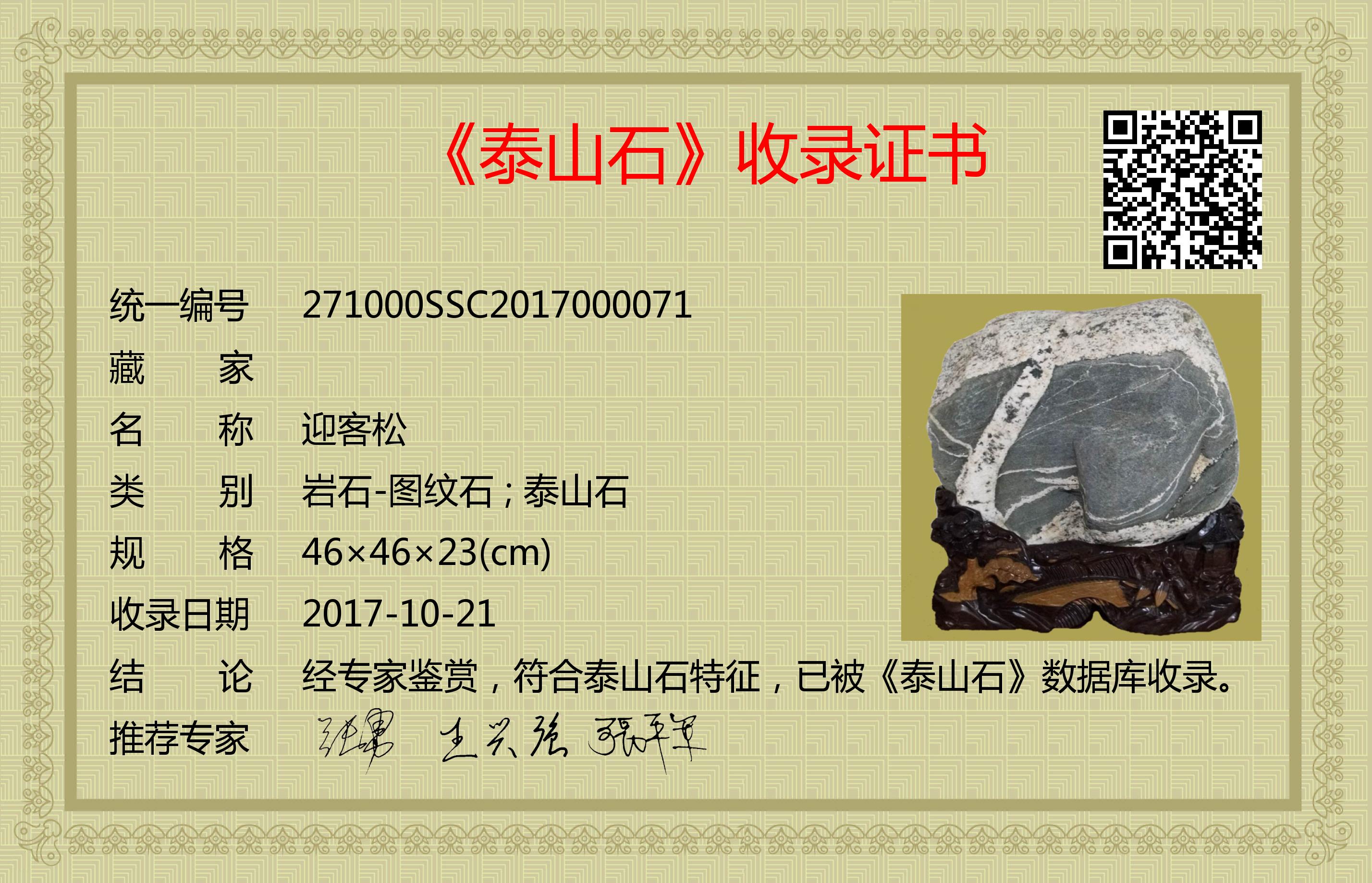 经专家鉴赏,符合泰山石特征,已被《泰山石》数据库收录。