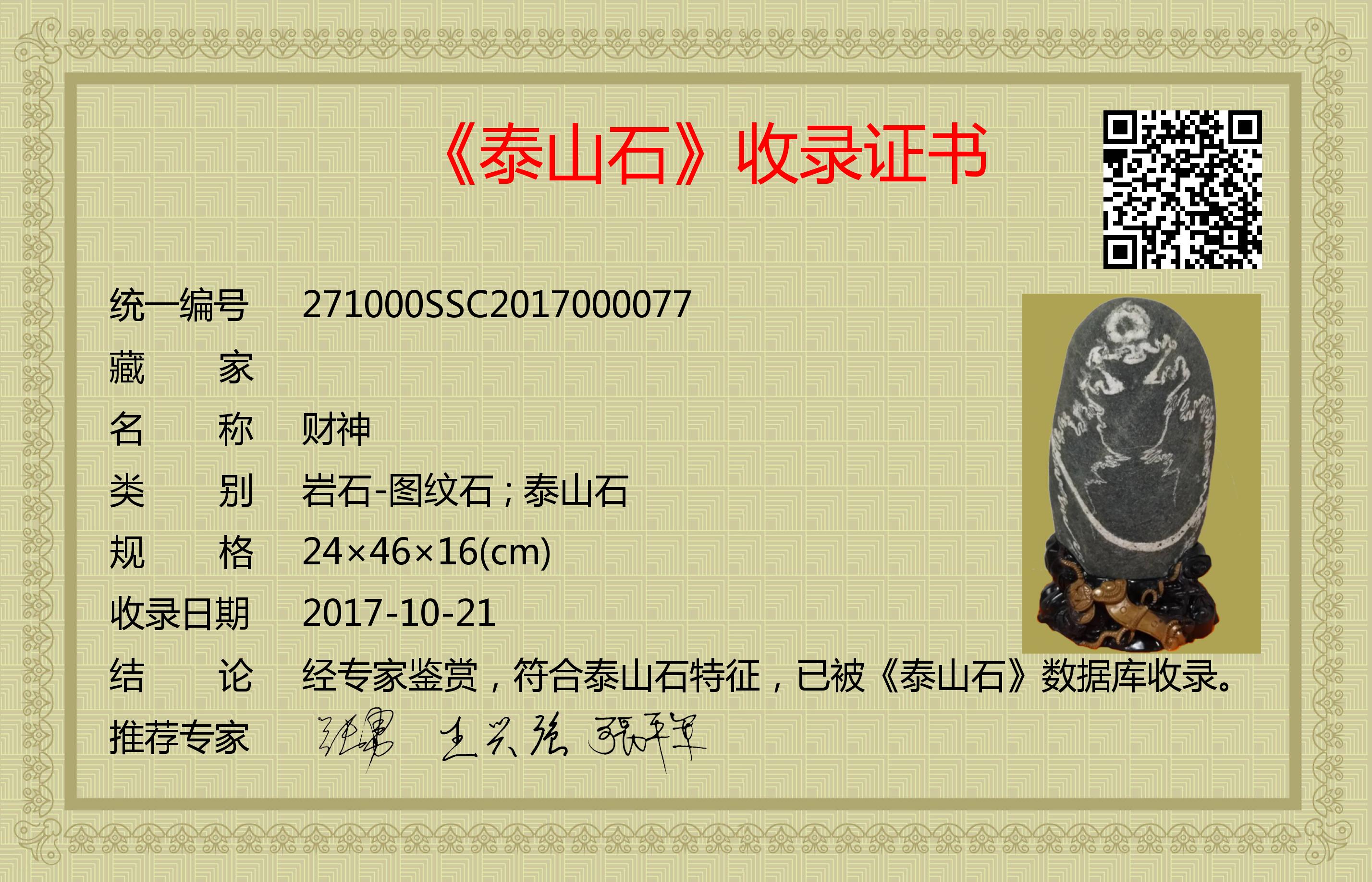 经专家鉴赏,符合泰山石特征,已被《泰山石》数据库收录。