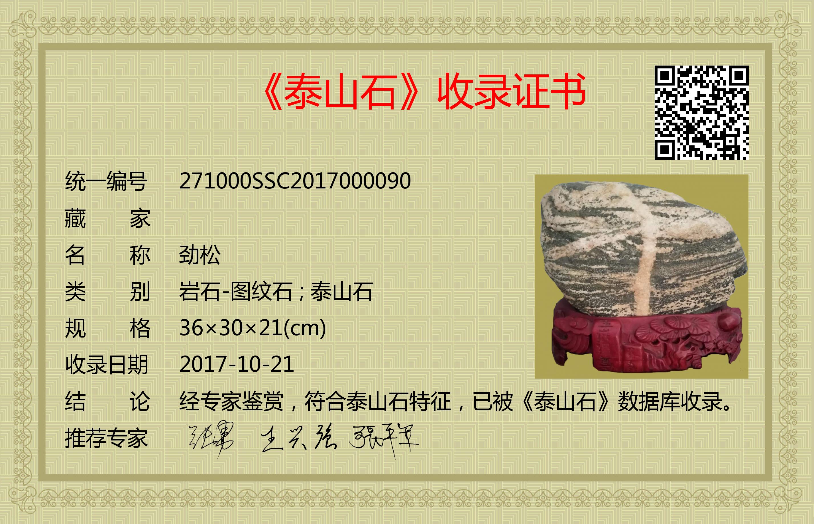 经专家鉴赏,符合泰山石特征,已被《泰山石》数据库收录。