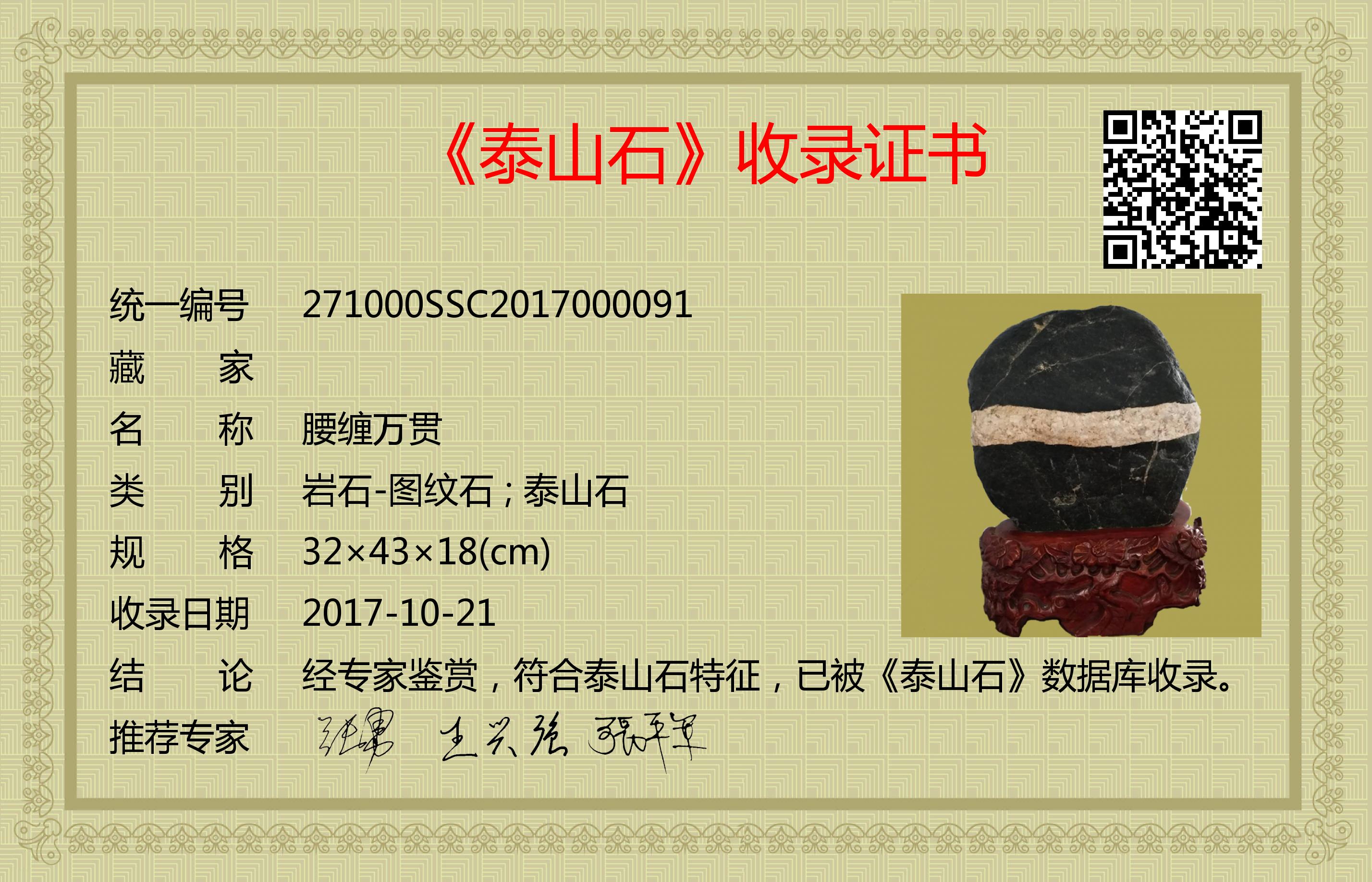 经专家鉴赏,符合泰山石特征,已被《泰山石》数据库收录。