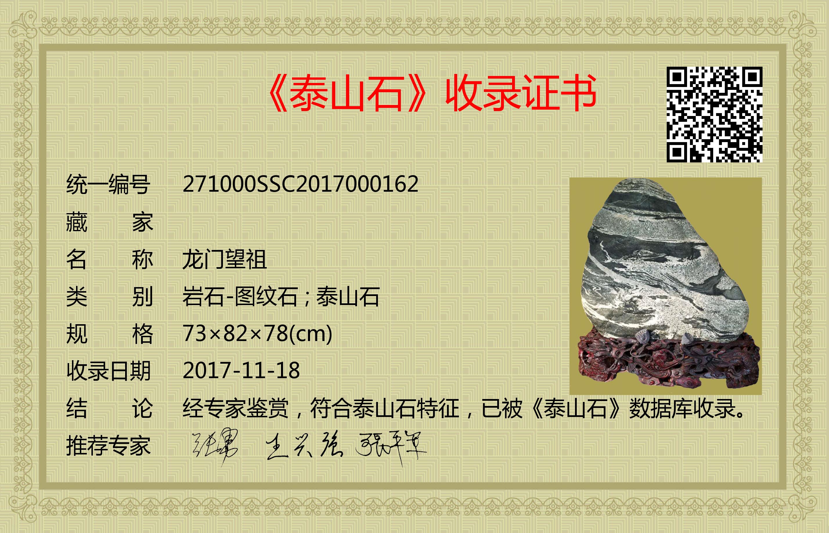 经专家鉴赏,符合泰山石特征,已被《泰山石》数据库收录。