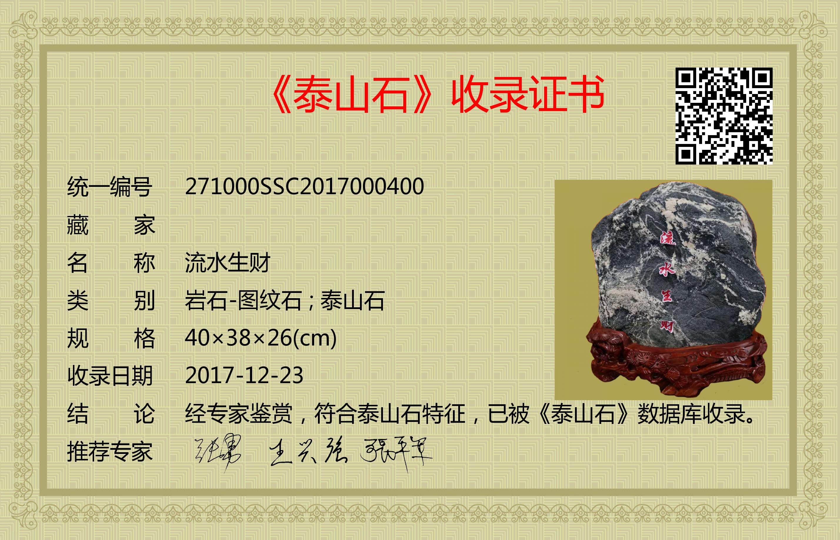 经专家鉴赏,符合泰山石特征,已被《泰山石》数据库收录。