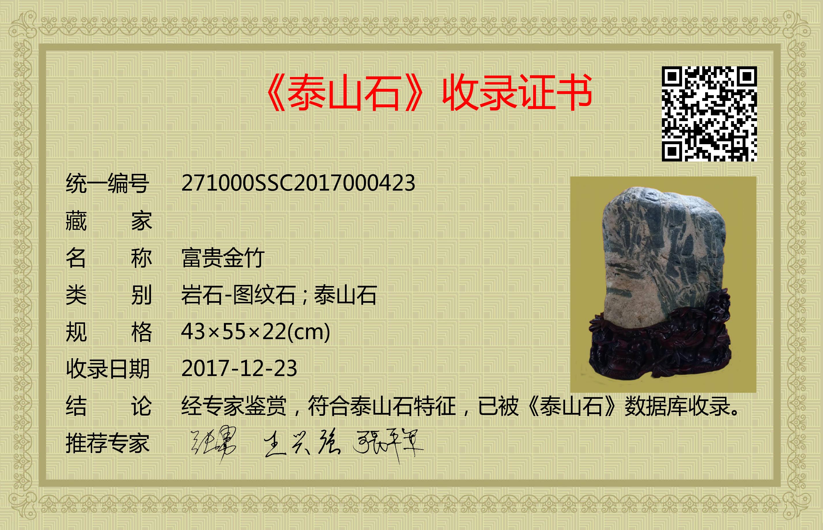 经专家鉴赏,符合泰山石特征,已被《泰山石》数据库收录。