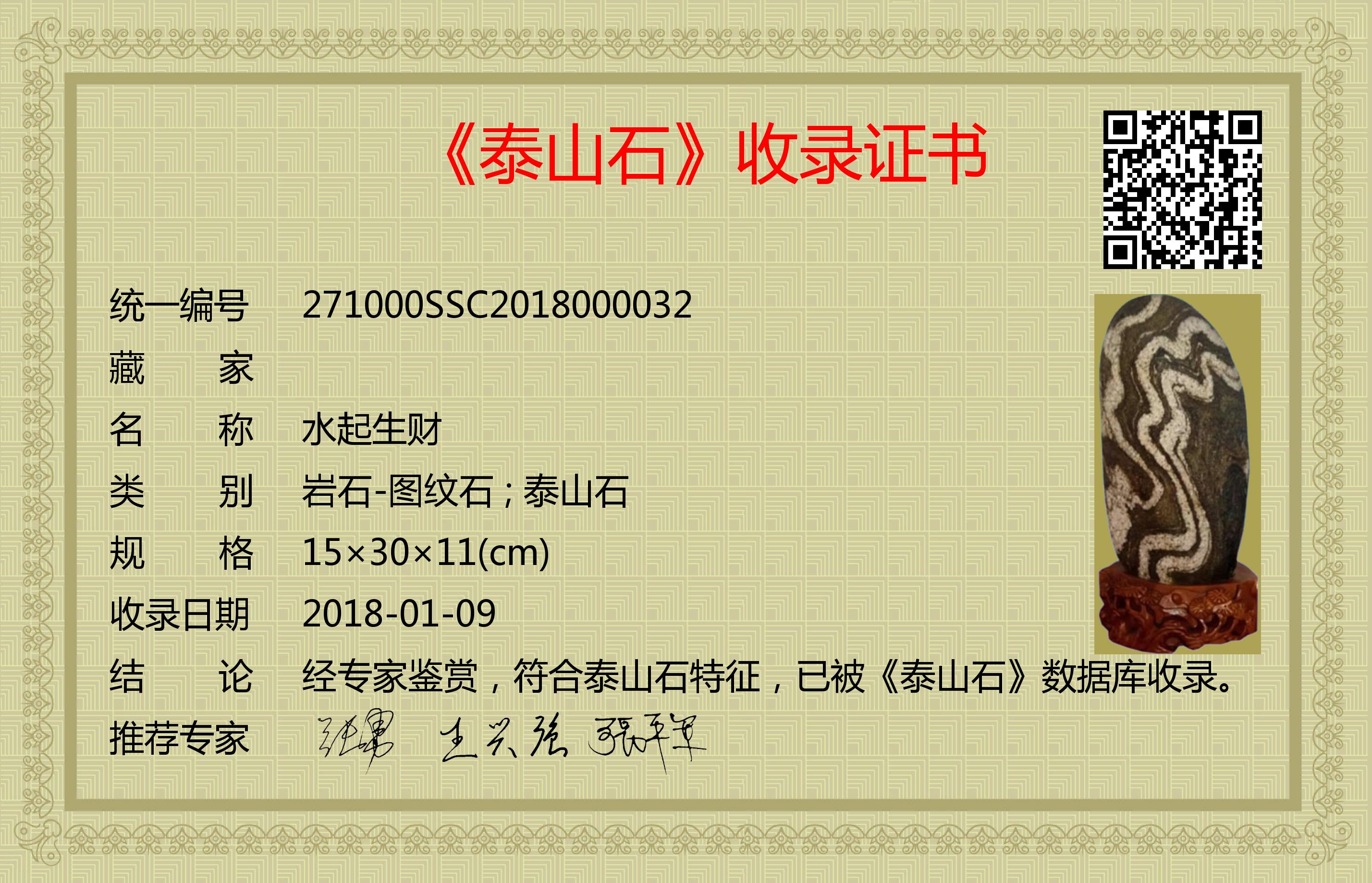 经专家鉴赏,符合泰山石特征,已被《泰山石》数据库收录。