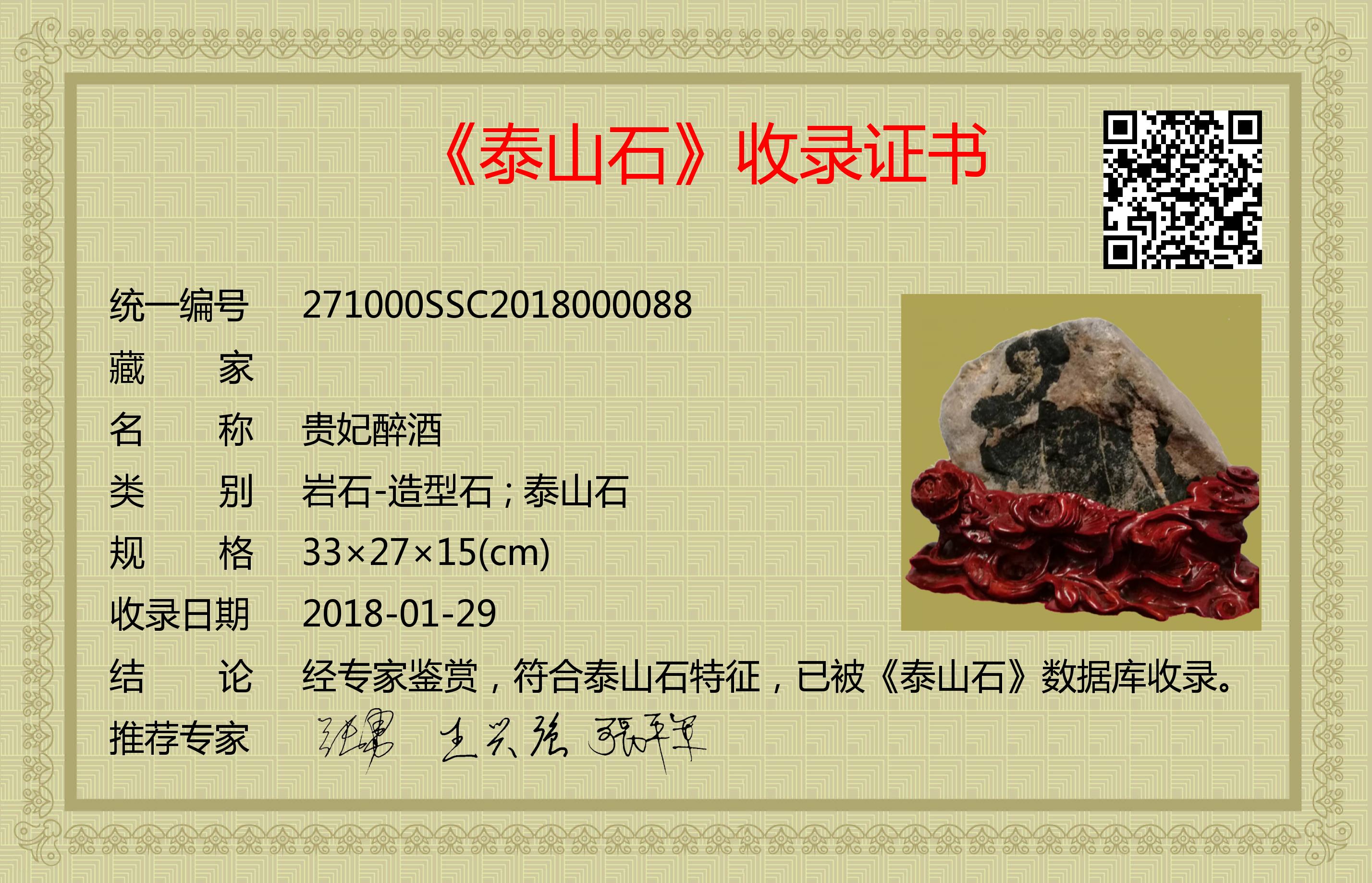 经专家鉴赏,符合泰山石特征,已被《泰山石》数据库收录。