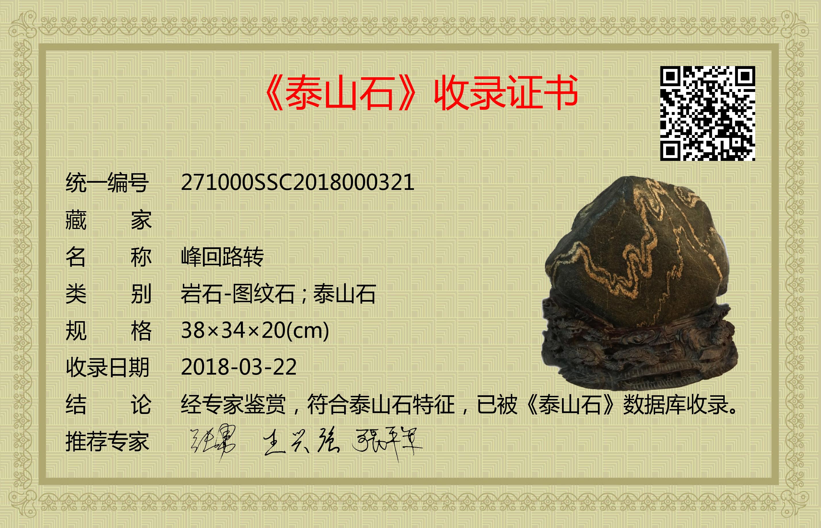 经专家鉴赏,符合泰山石特征,已被《泰山石》数据库收录。