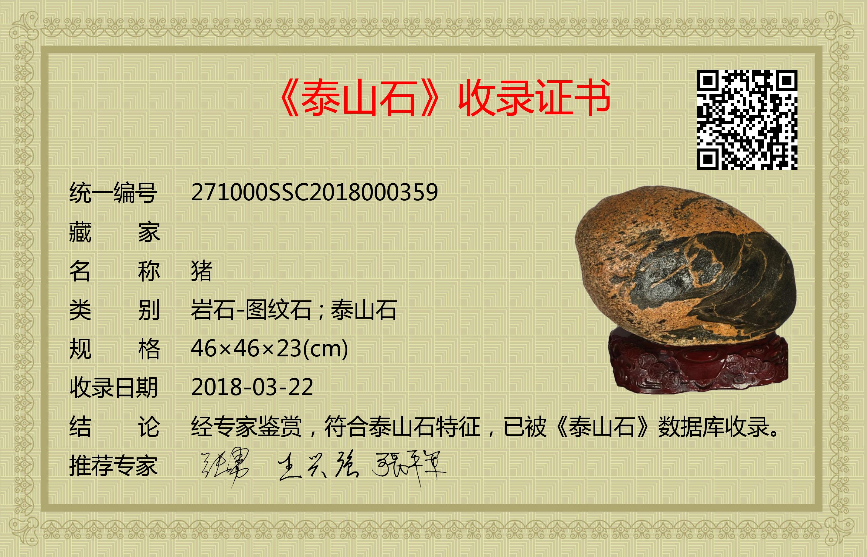 经专家鉴赏,符合泰山石特征,已被《泰山石》数据库收录。