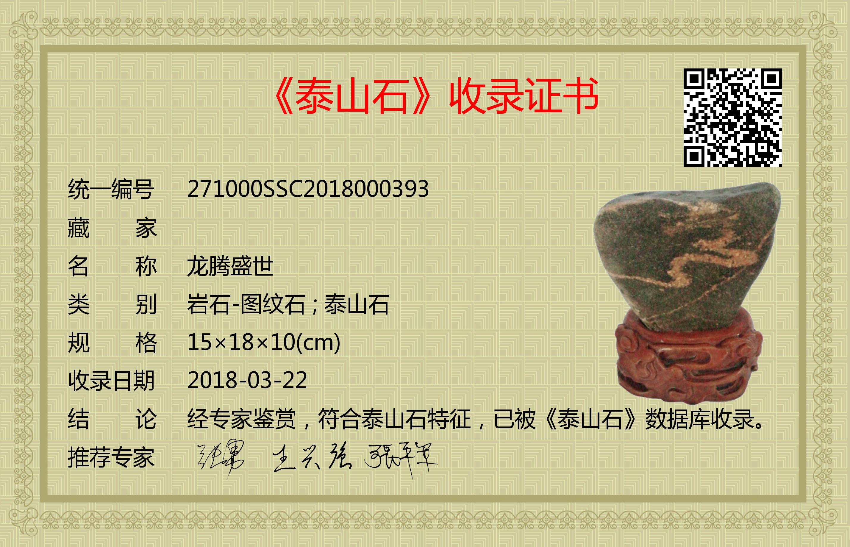 经专家鉴赏,符合泰山石特征,已被《泰山石》数据库收录。