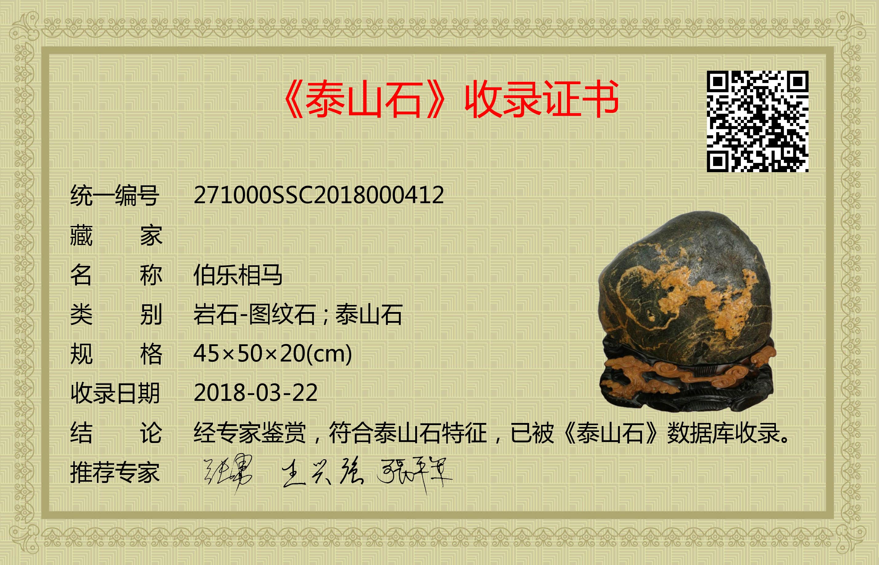 经专家鉴赏,符合泰山石特征,已被《泰山石》数据库收录。